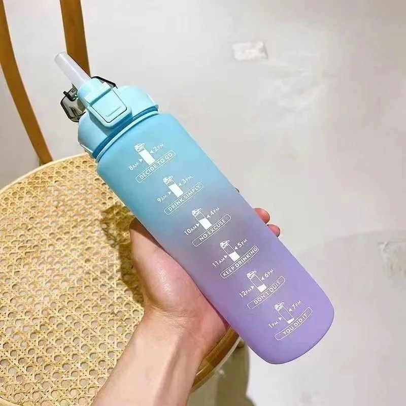 【2枚購入で100円OFF】タイムマーカー付き 時間と量付き BPAフリーのつや消しプラスチック 2000ml 水筒 アウトドア 携帯便利 キャンプ 1リットル ねじ込み式の蓋 超軽量 スポーツ ウォ