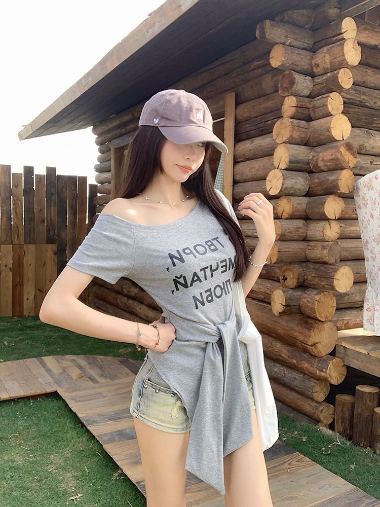 2025 春夏トップス 半袖 Tシャツ 韓国 レイヤード風 ショート丈 着痩せスリムかわいいフレンチセクシーラウンドネックおしゃれスリーブカジュアルコーデファッション系レディースお出かけ T