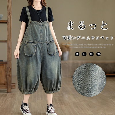 バルーンパンツ レディース デニム サロペット オールインワン オーバーオール 作業 パンツ 七分丈 大きいサイズ サロペットパンツ ゆったり 体型カバー バルーン デニムパンツ 7分丈 丸い クロッ