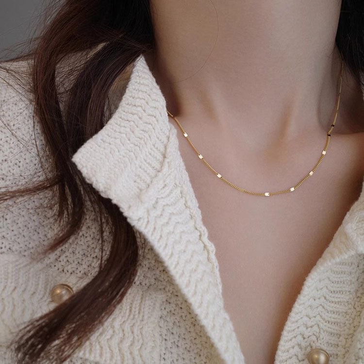 s925 純銀製の極度の光沢のあるスパンコールのネックレス女性の内部星の平野鎖のニッチの軽い贅沢な設計は摩耗の鎖を重ねることができます