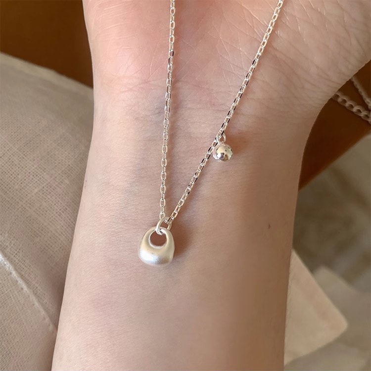 s925 純銀製の曇らされた無光沢の小さい銀製ブラケットのネックレスの女性の内部幾何学的な円形のビードの鎖骨の鎖のニッチの設計高度の感覚