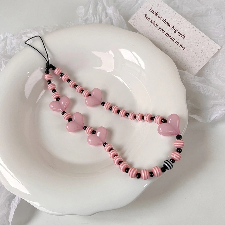 Jin Zhiniと同じスタイルのピンクの愛のビーズの携帯電話ケースチェーン装飾紛失防止携帯電話吊り下げチェーンガールズハート吊り下げチェーン