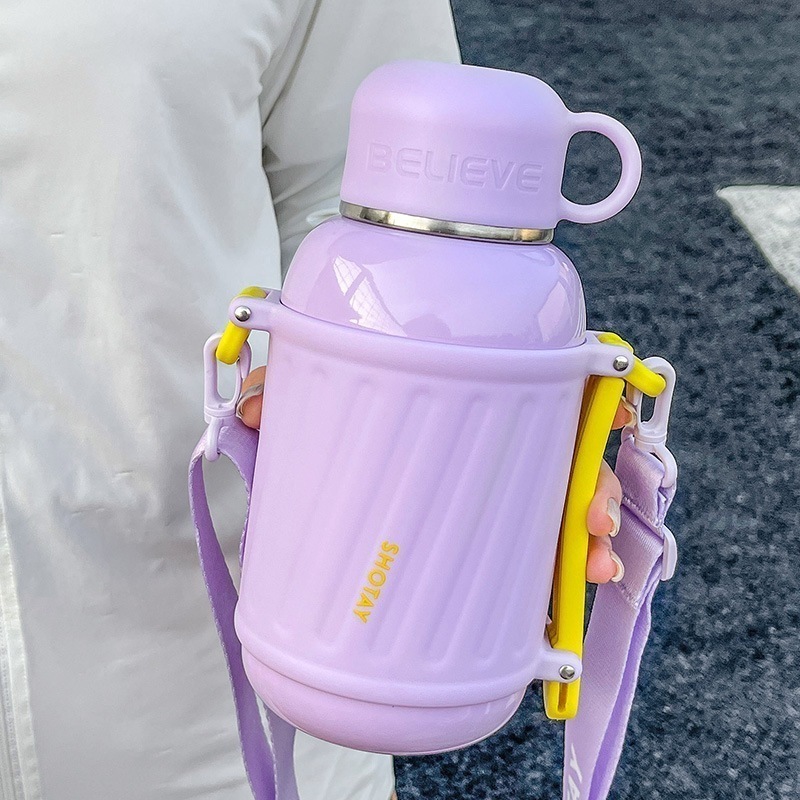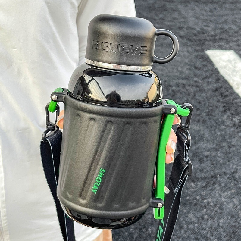 カバー付き 1000ml 直飲み 真空断熱 水筒 ステンレスボトル 保冷 茶こし付き ストラップ付き コップ付き 肩紐 800ml スポーツドリンク対