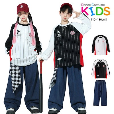 ダンス衣装 黒 白 長袖トップ ジーンズ キッズ ダンス衣装 セットアップ ストライプ 女の子 男の子 チア チアガール ダンスウェア ヒップホップ ジャズダンス ポッピング 団体服 演出服 おしゃれ