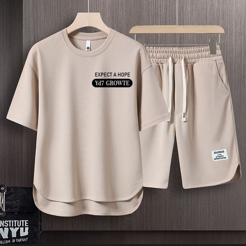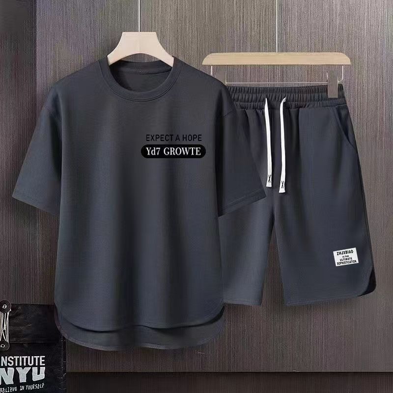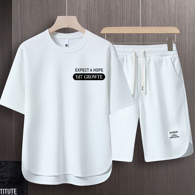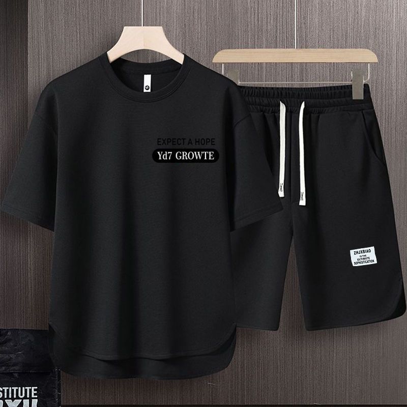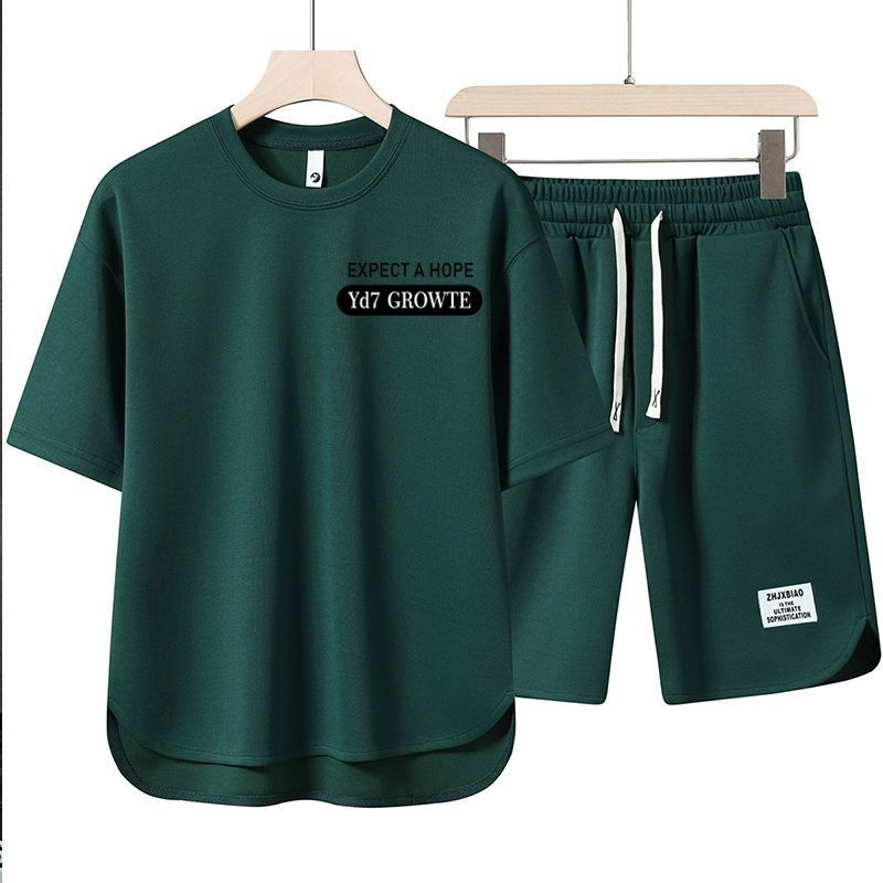 スーツ男性半袖夏の新ゆったりサイズ半ズボンカジュアル速乾ハンサムトレンド2点セット
