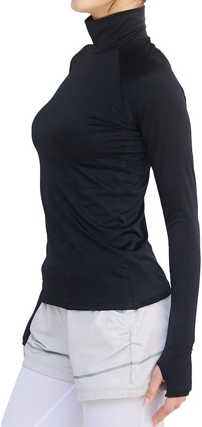 グラモア[グラモア] スポーツ インナー YOGA by glamore 指穴付きハイネック長袖 UVカット 吸汗速乾 伸縮性 レディース M ブラック FT0271