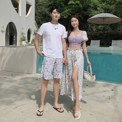 水着半袖レディースヌーブラ韓国ビキニ体型カバーラッシュガードワンピースレディース メンズ お揃い セット 水着 女性上下セット 男性セット zb16