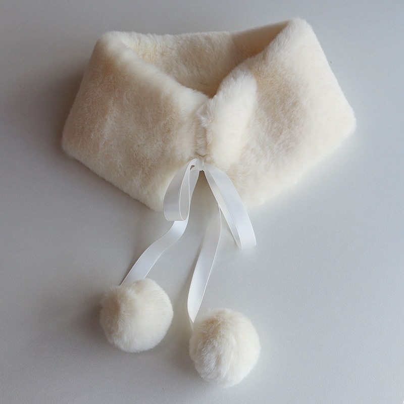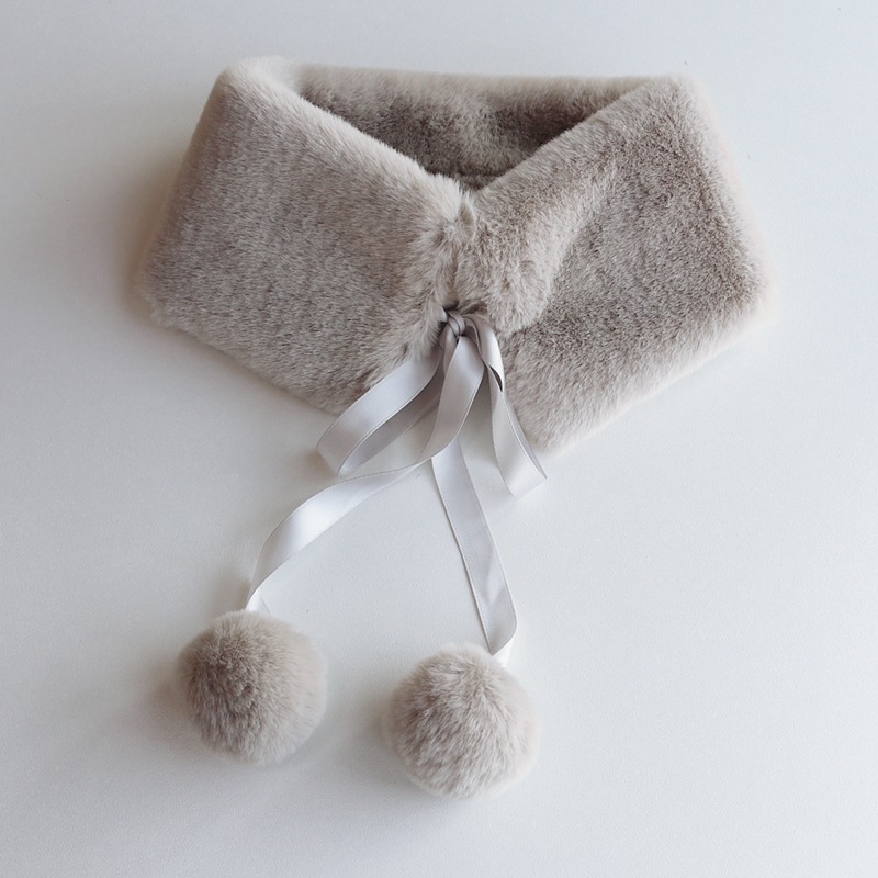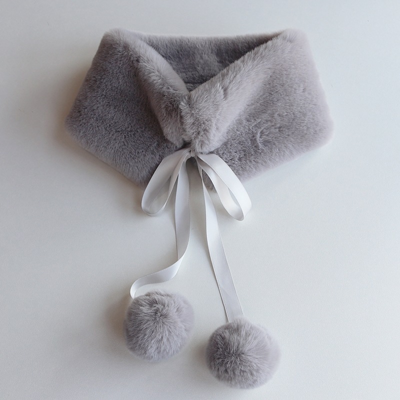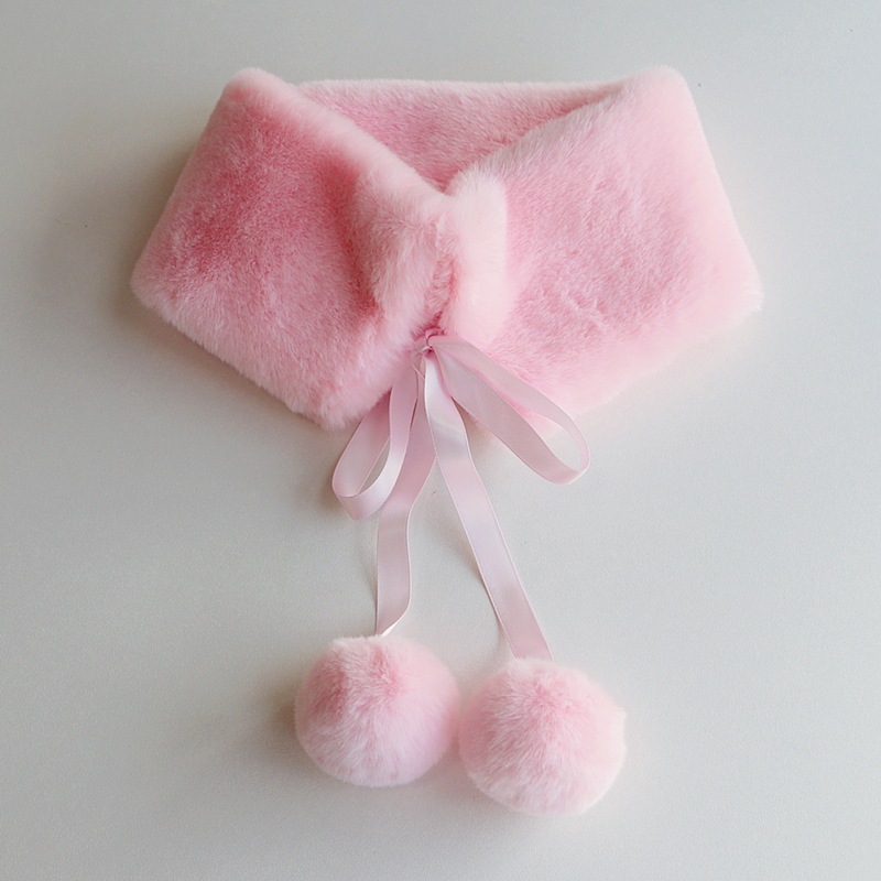 新しい冬の日本の温かいスカーフかわいいロリ・ファー・ボール・ハンフの長さの女性ソリッドカラー毛皮のぬいぐるみスカーフ