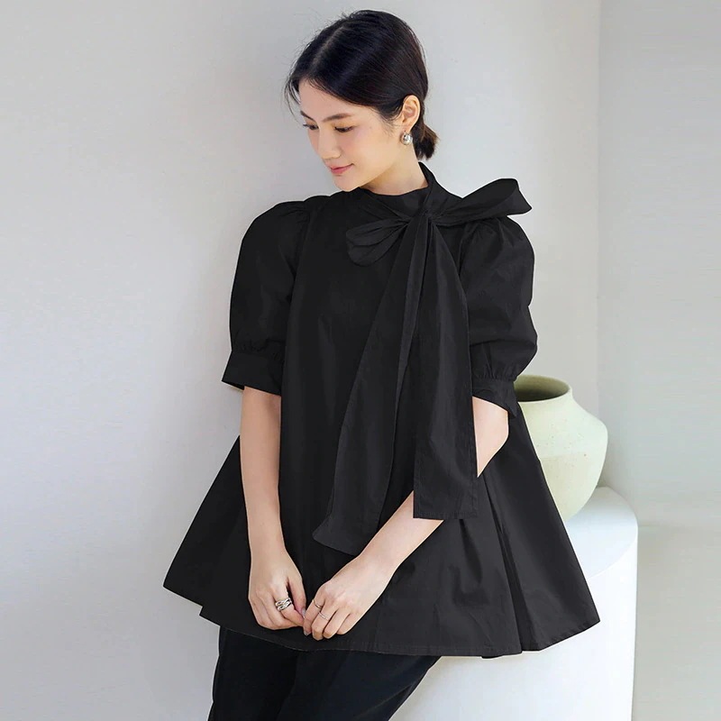 半袖Tシャツ日本春気質通勤ドールカラー薄手コットンルーズタイプカーディガンピュアカラー白半袖セット蝶ネクタイ