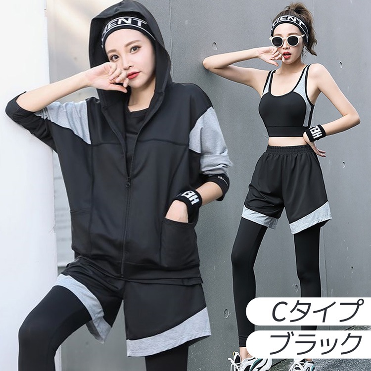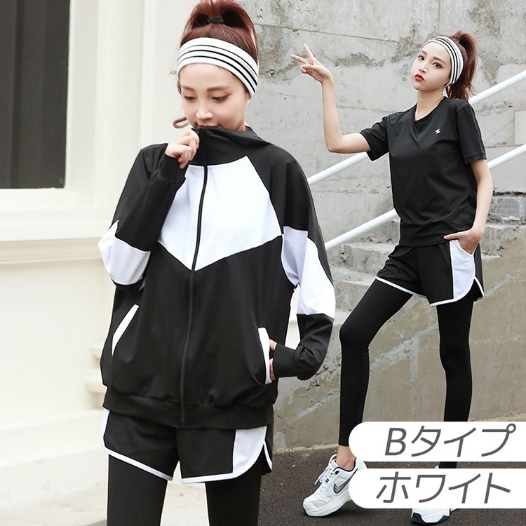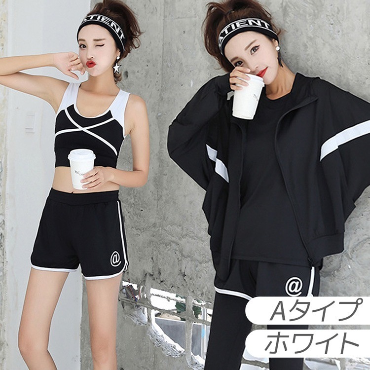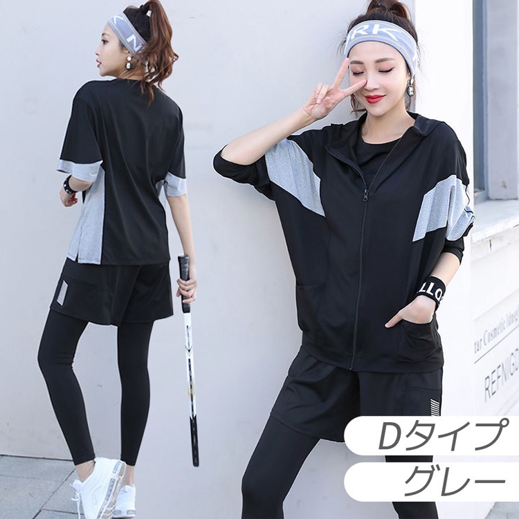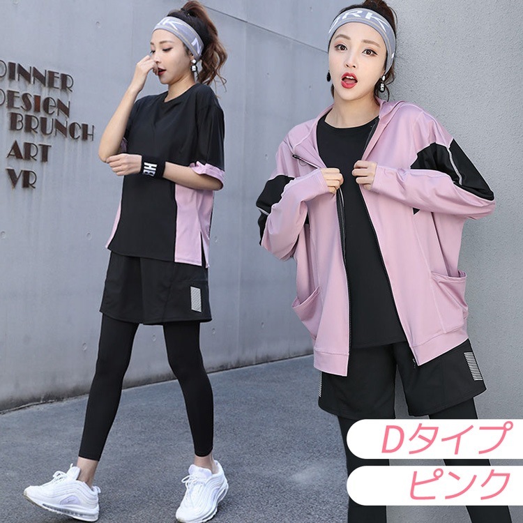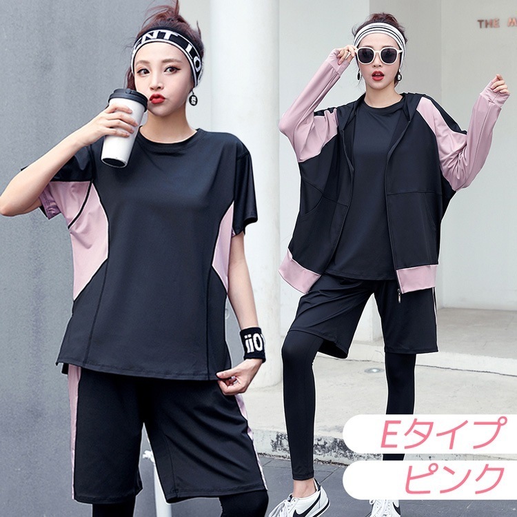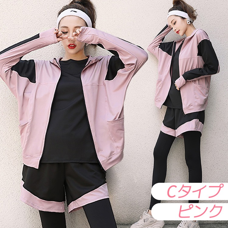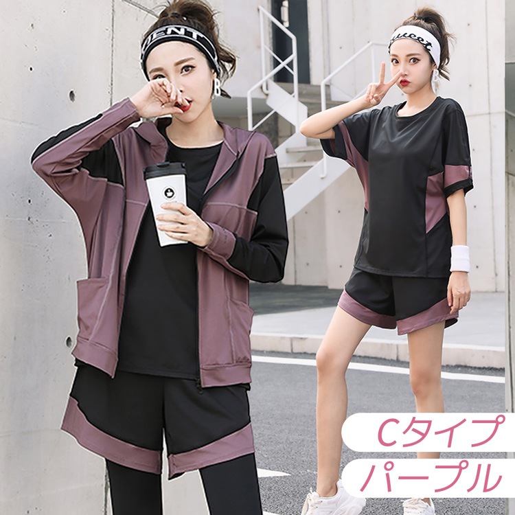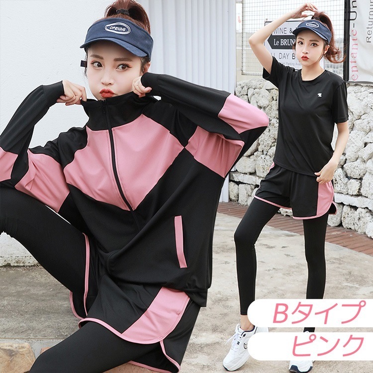 5点セット スポーツウェア レディース 上下セット ラッシュガード 長袖 体型カバー 女性 フィットネスウェア フィットネス ヨガウェア 水陸両用 UVカット 女性用 大きいサイズ トレーニングウェア