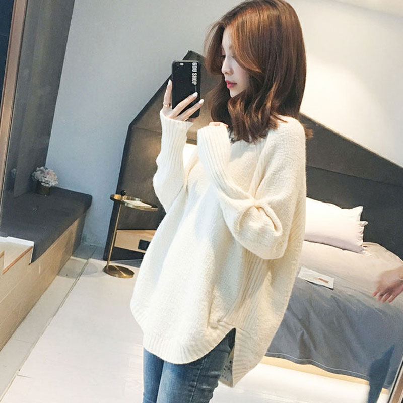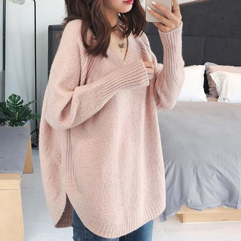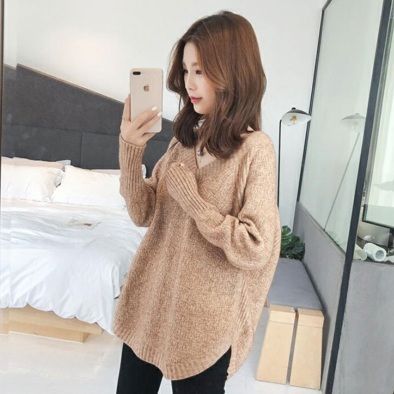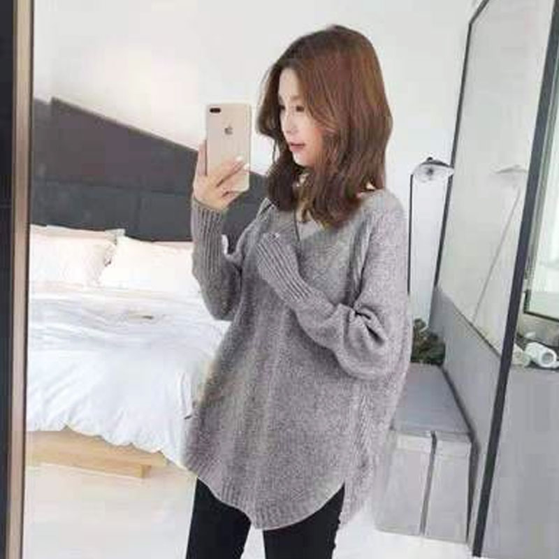 ラウンドヘム Vネック ニット トップス 長袖 セーター ざっくり レディース 裾ラウンド カジュアル きれいめ 長め丈 体型カバー チュニック 無地