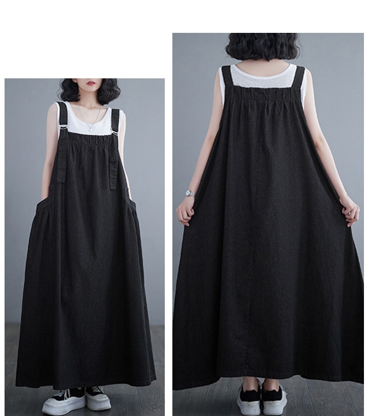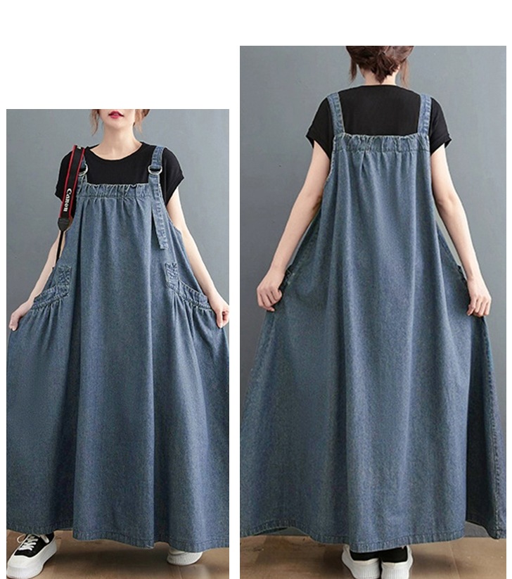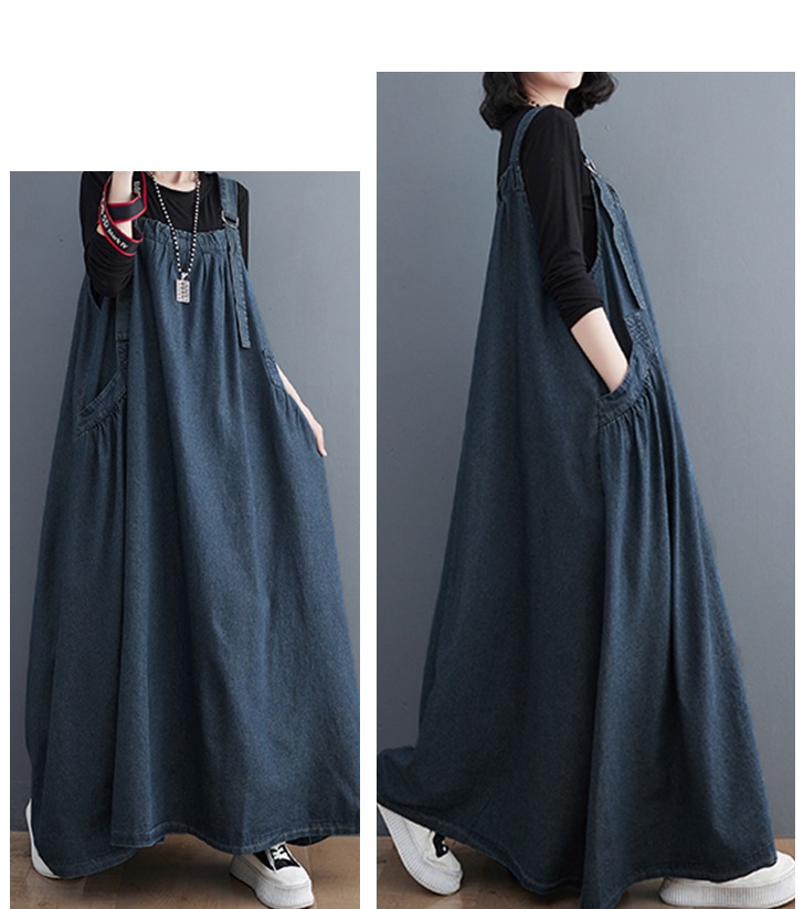 ジャンパースカート ジャンパーワンピース デニムワンピース サロペット オールインワン レディース 春 秋 デニム 重ね着 無地 マキシ丈 大きめ 体型カバー ロング丈 ポケット カジュアル かわいい