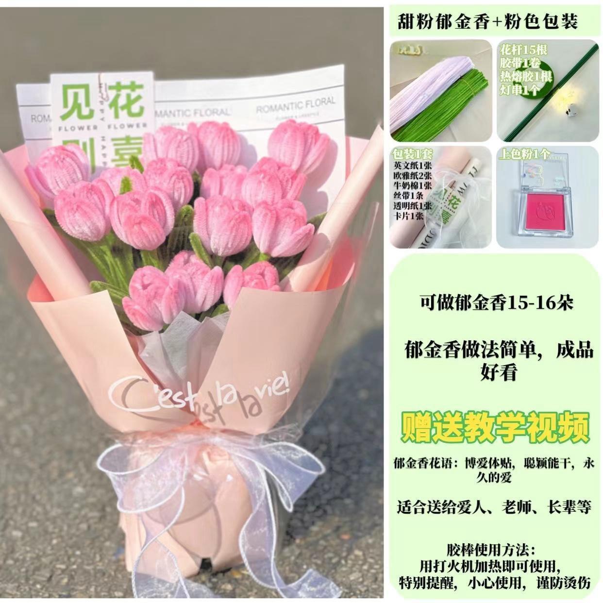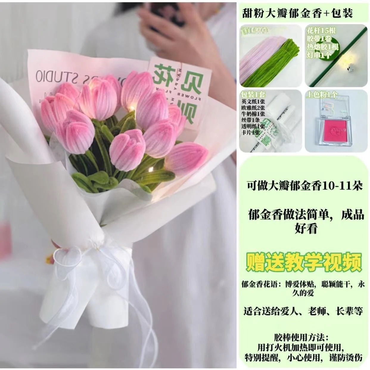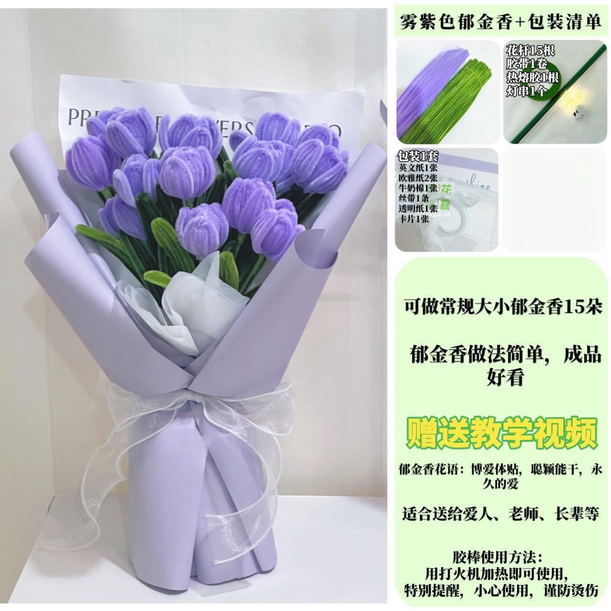 コーデ完成!ツイストスティック郁香花束diy手作り材料バッグ完成品彼女の親友の誕生日プレゼント花