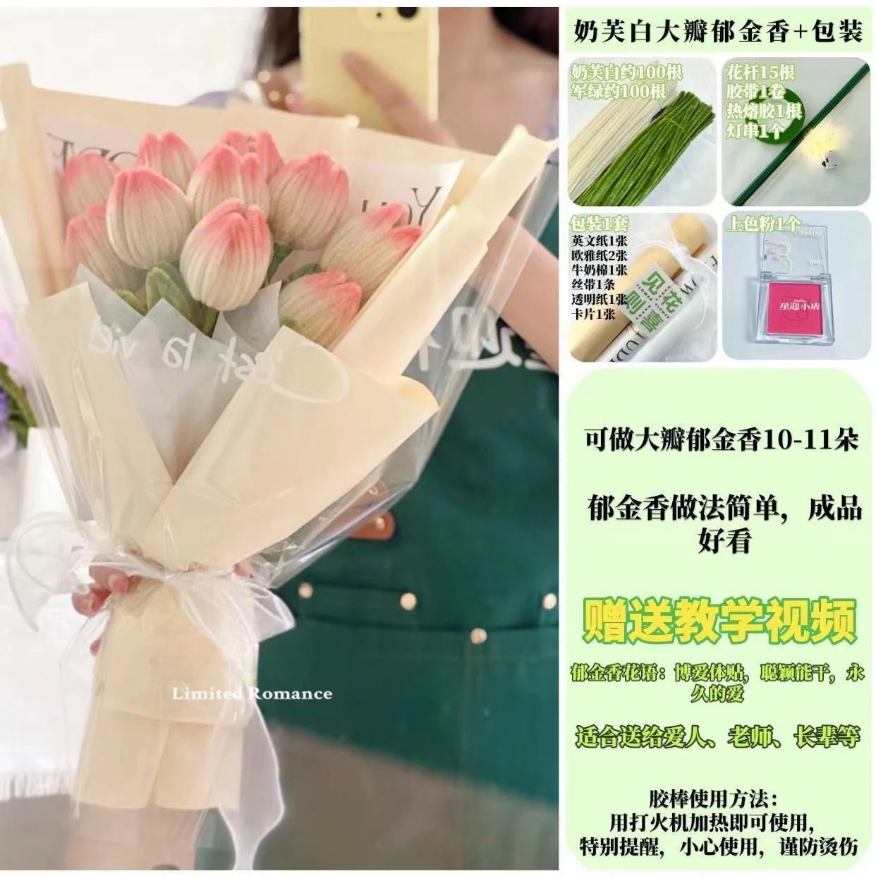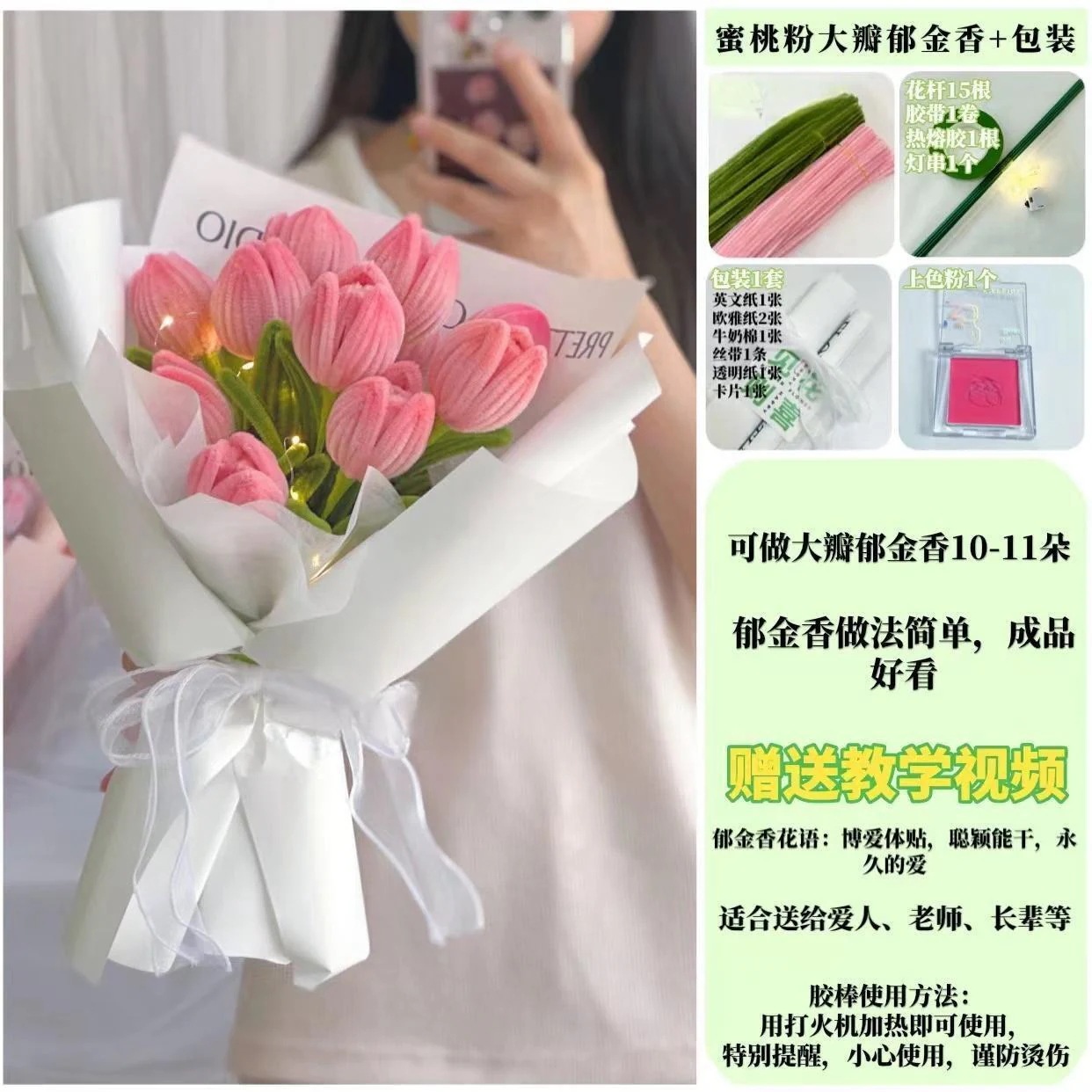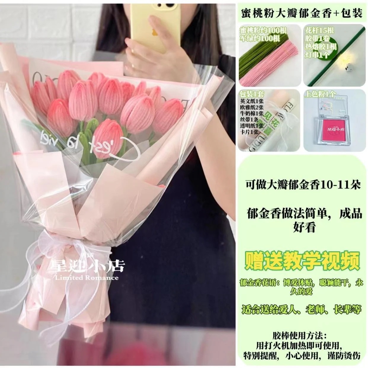 コーデ完成!ツイストスティック郁香花束diy手作り材料バッグ完成品彼女の親友の誕生日プレゼント花