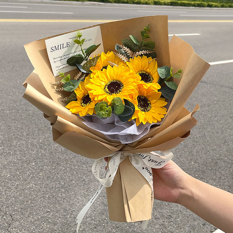 新入荷 ひまわりの花束は花の大人の贈り物の誕生日プレゼントの女性教師の日プレゼントの花束を描いて先生に贈る
