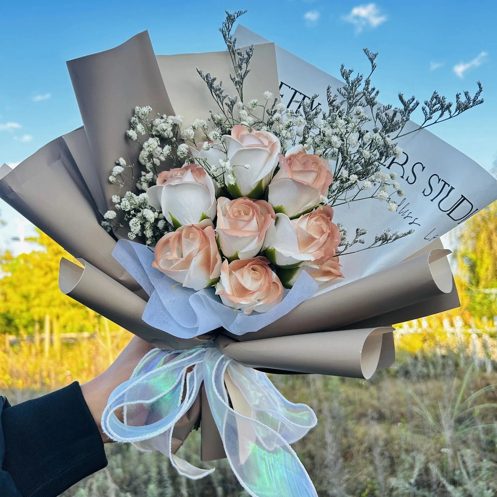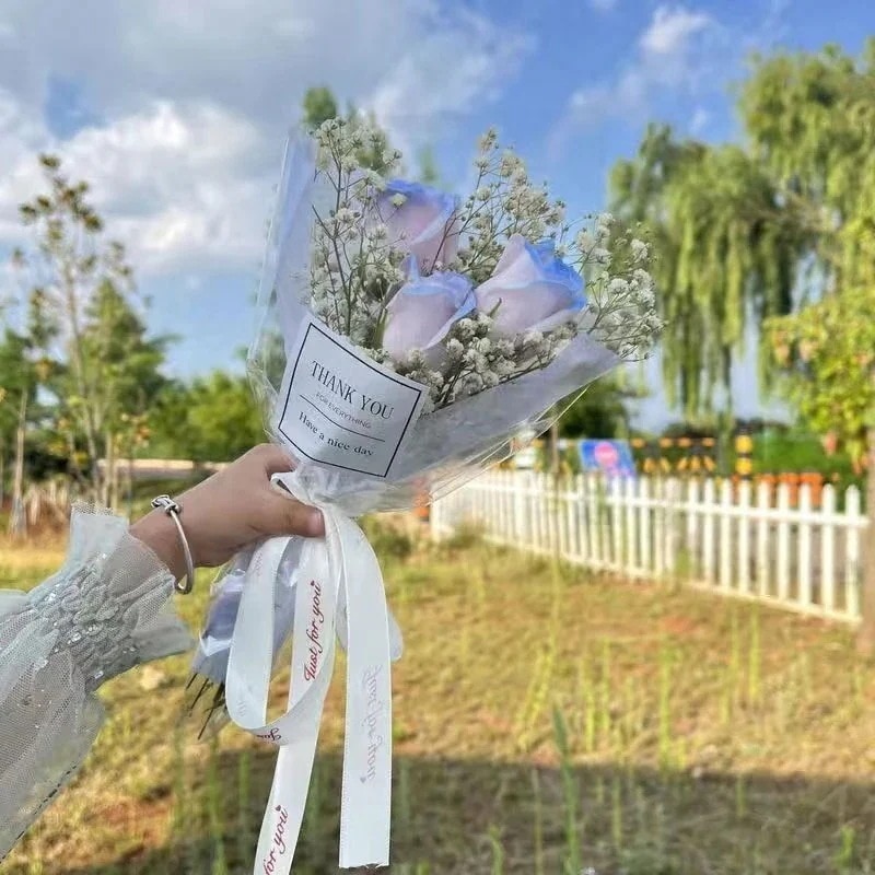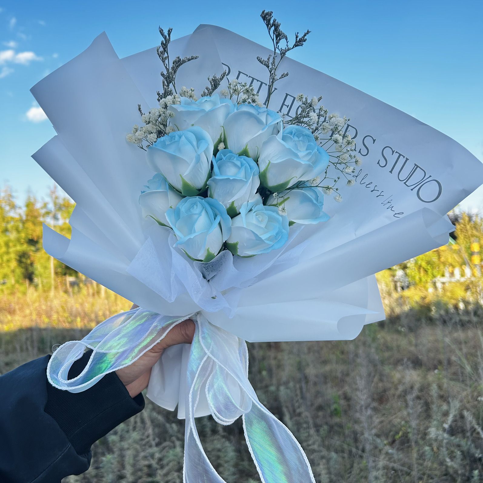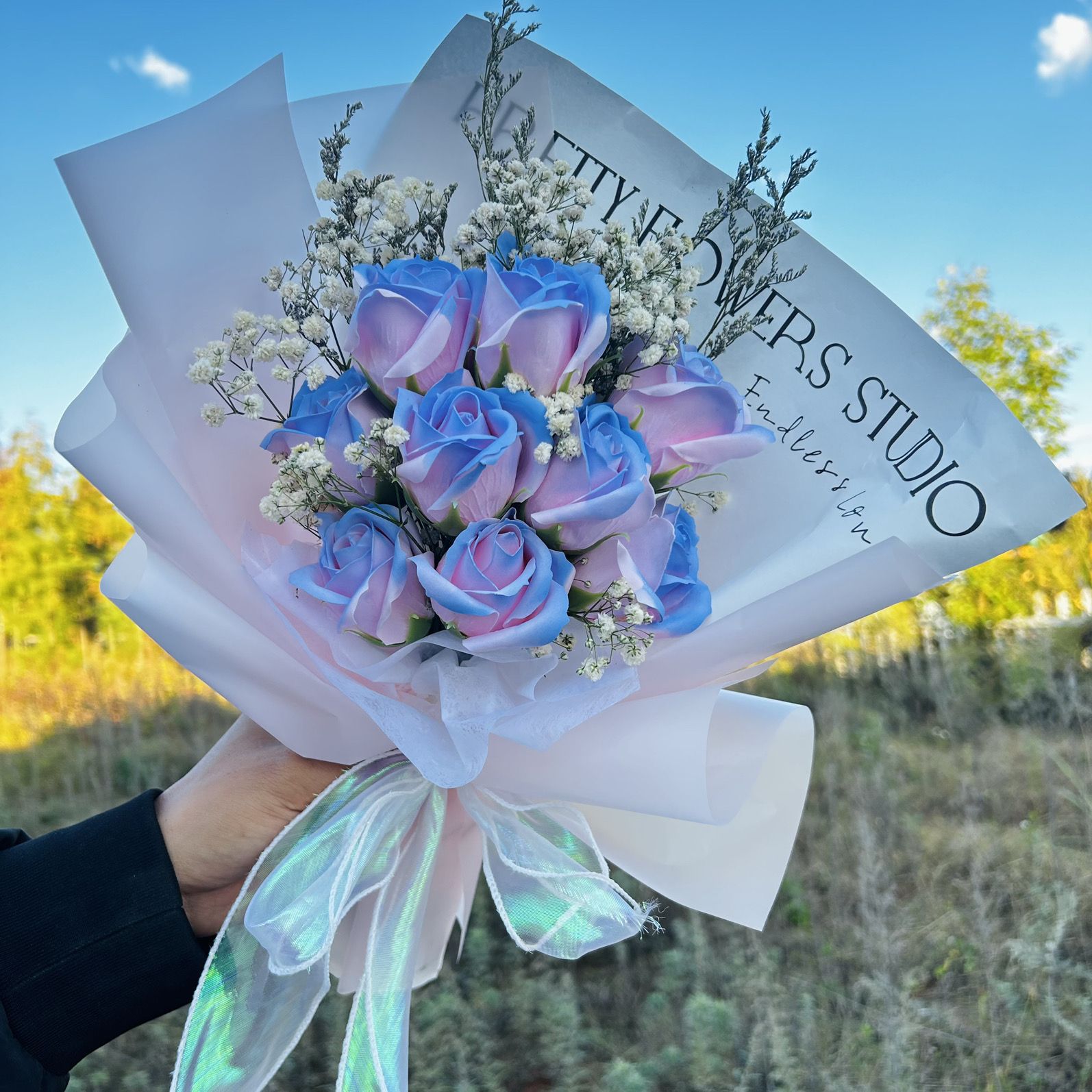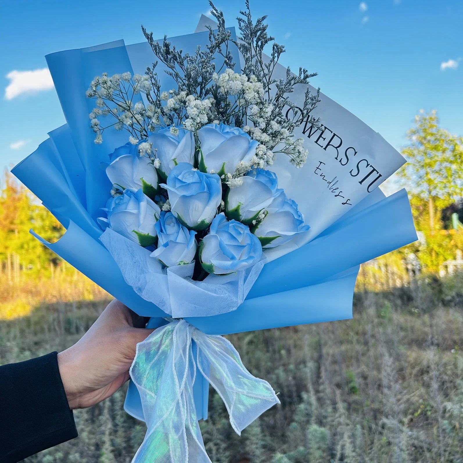 贈り物には必ず必要だ 砕いた氷の青いバラの不滅の花ドライフラワーブーケバレンタインデーの誕生日のプレゼント彼女への贈り物造花