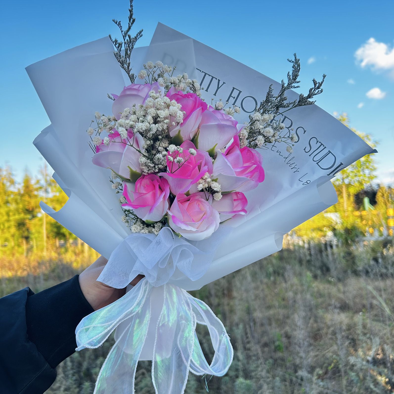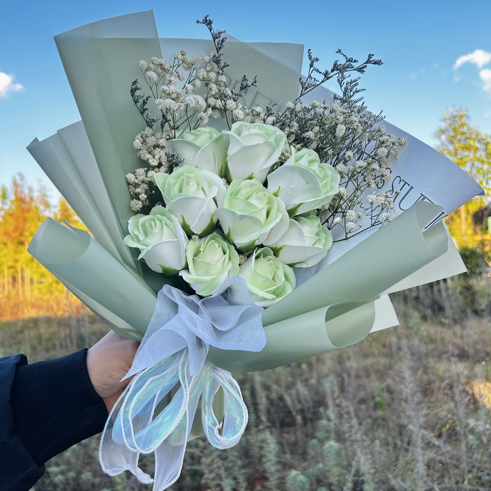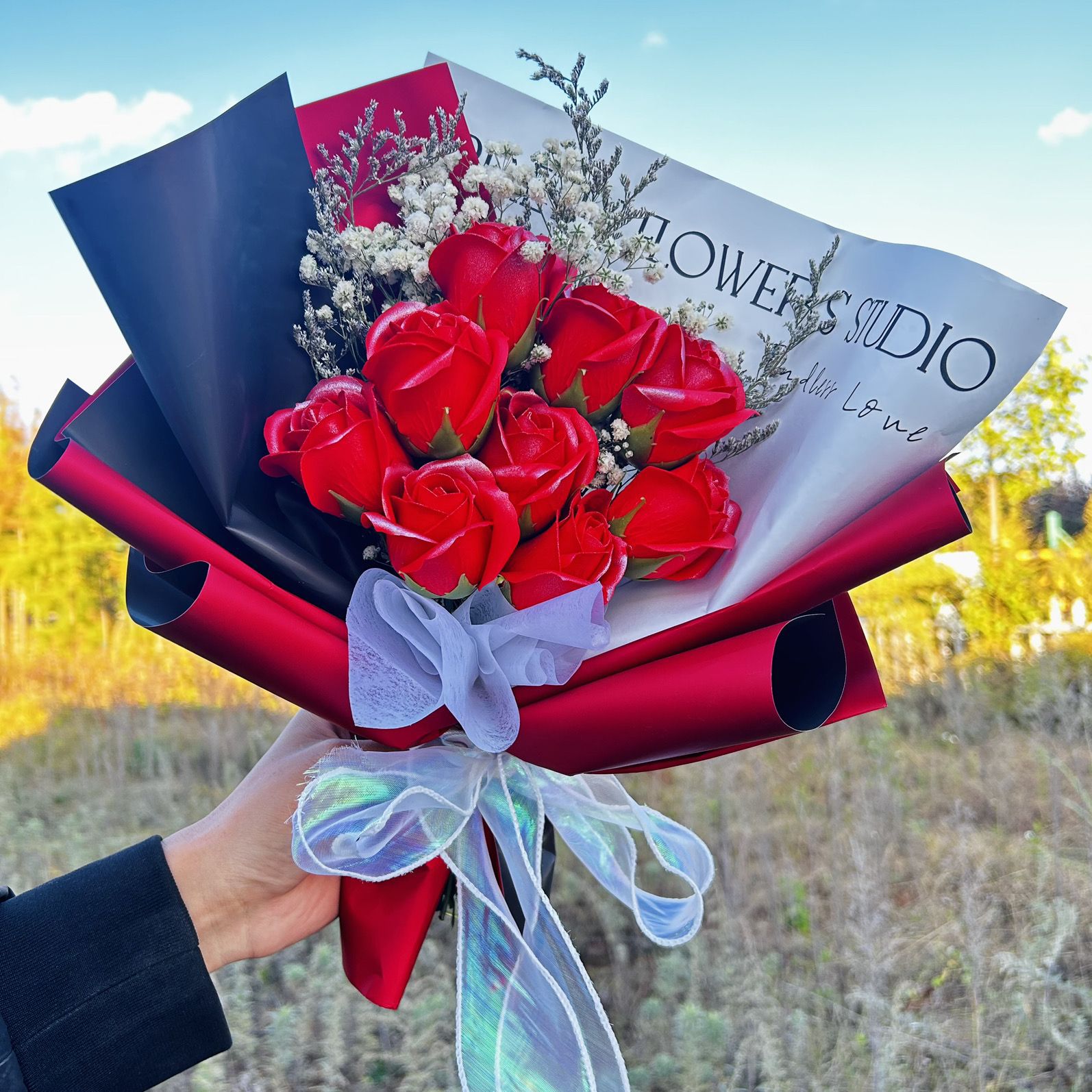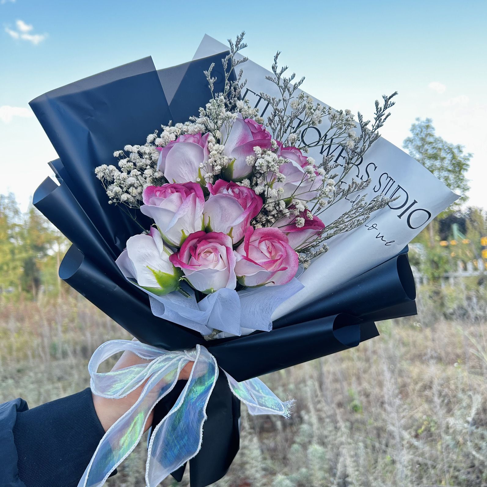 贈り物には必ず必要だ 砕いた氷の青いバラの不滅の花ドライフラワーブーケバレンタインデーの誕生日のプレゼント彼女への贈り物造花