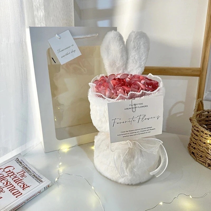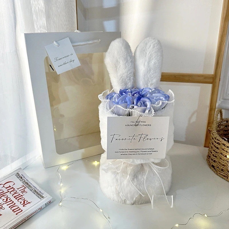人気 クリエイティブ シミュレーション ローズ ソープ ブーケ うさぎの耳 花を持っている ガールフレンドへのロマンチックなギフト母の日 花束321169147