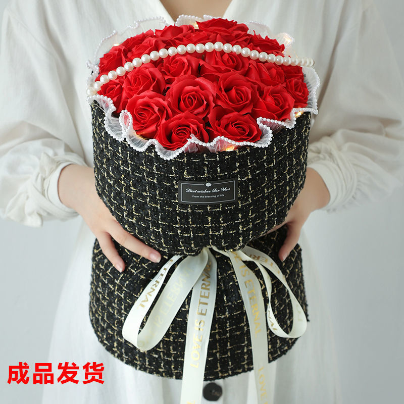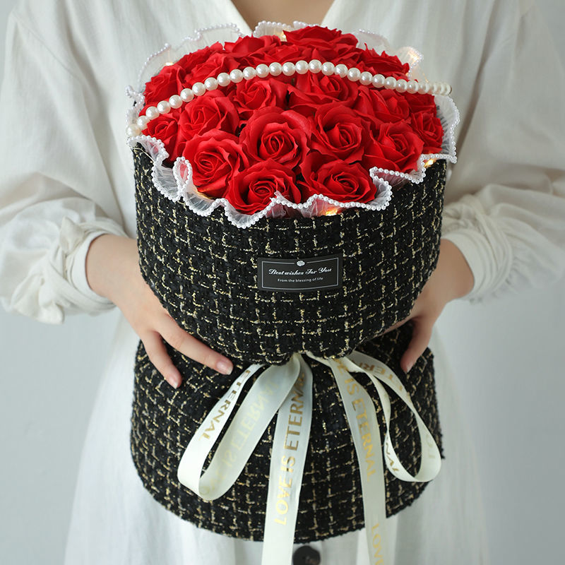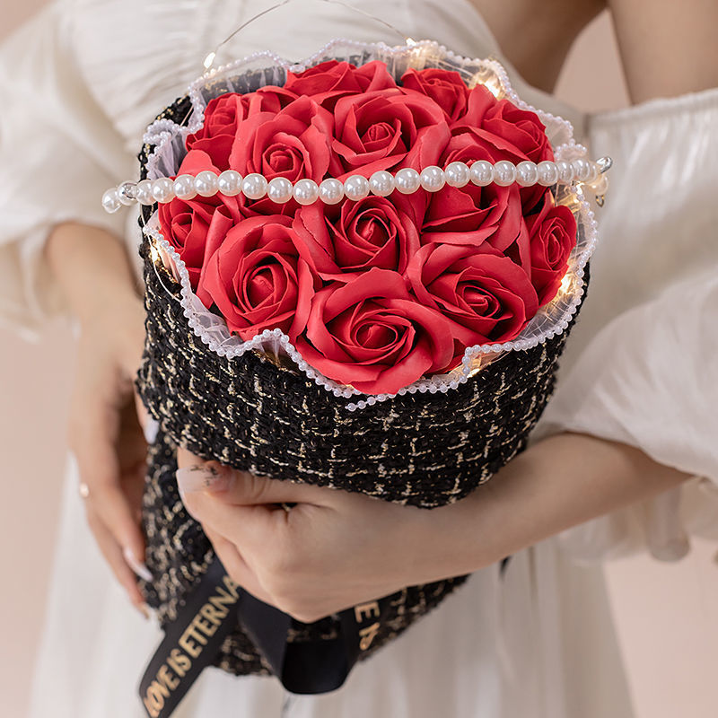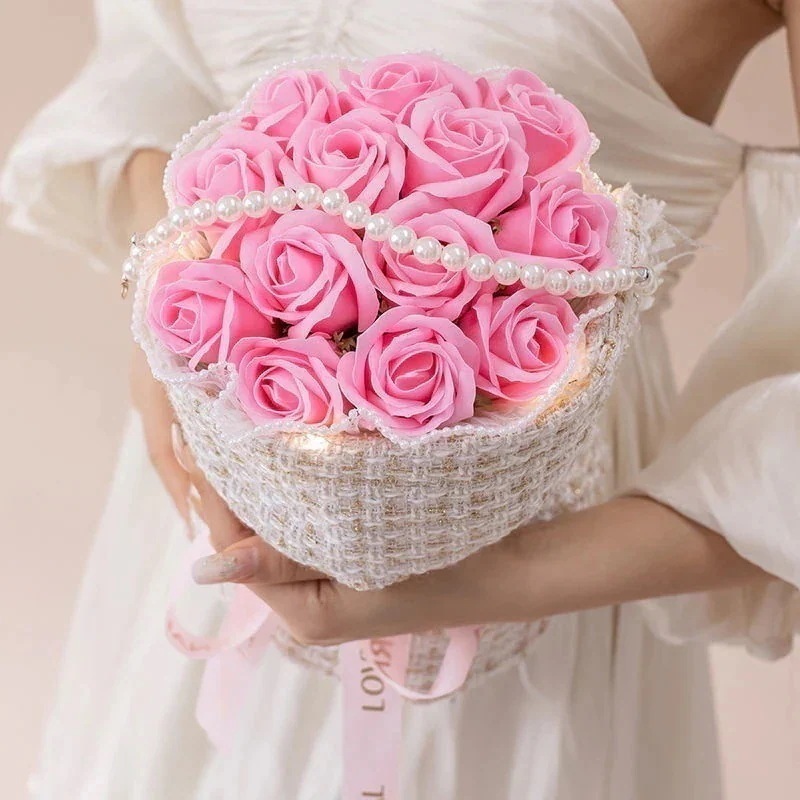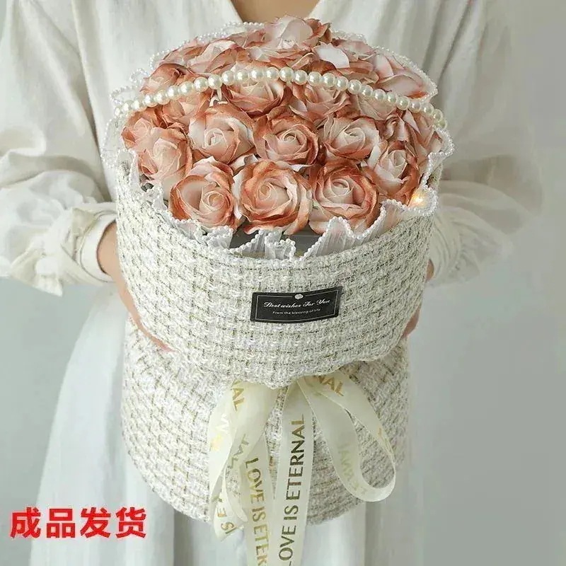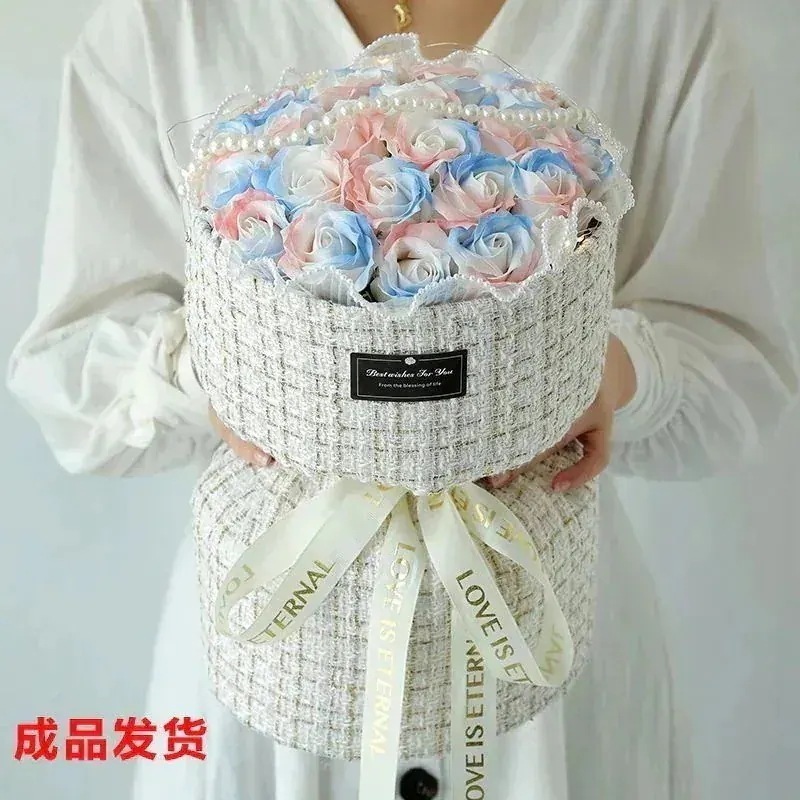 ボーイフレンドガールフレンド妻シミュレーションソープフラワー誕生日の女の子のための小さな砕いた氷の青いバラのブーケ
