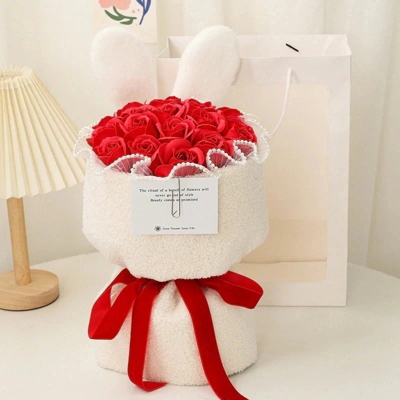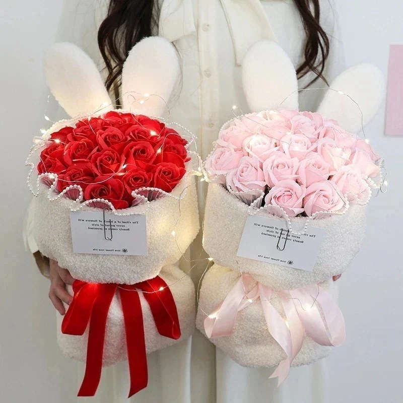 ソープ シミュレーション ガールフレンドへのロマンチックなギフト 花を持っている うさぎ ブーケ クリエイティブ うさぎの耳 ローズ