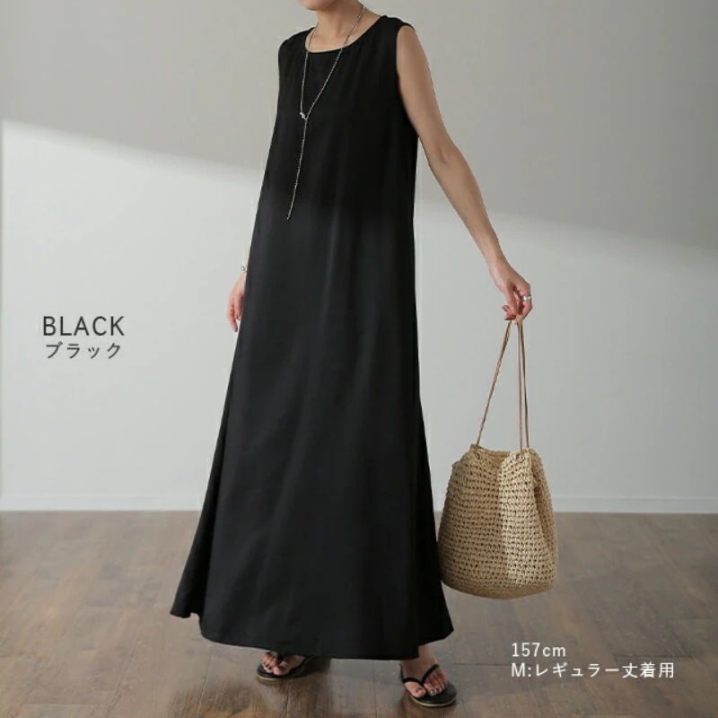 ワンピース レディース マキシ ロング ロングワンピース ロングワンピ テントワンピ タンクトップ ノースリーブ マキシワンピース マキシワンピ 体型カバー 大きいサイズ きれいめ 黒 春