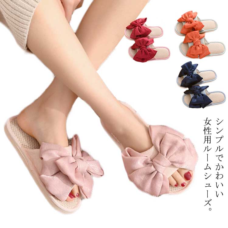 【送料無料】スリッパ レディース ルームシューズ 可愛い リボン リネン 麻 室内履き ベランダ サ