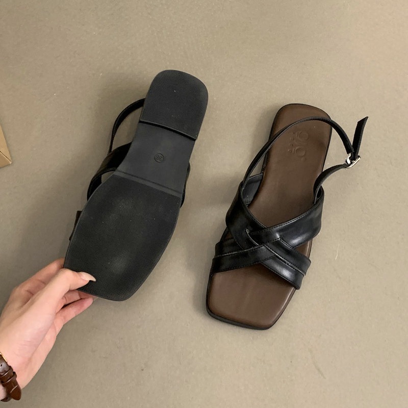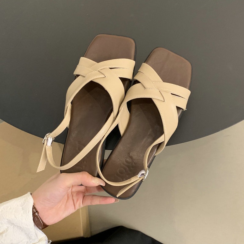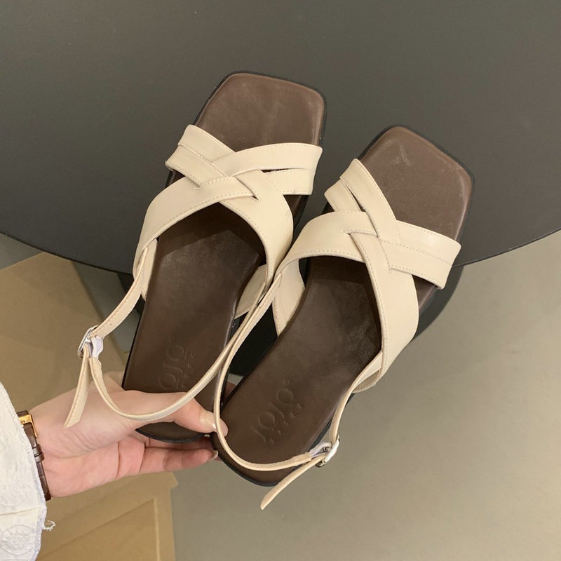 夏の新作ご紹介 レトロ スクエアトゥ フラット サンダル カジュアル カジュアル ワイルド サンダル レディース 大きいサイズ サンダル 楽ちん 歩きやすい