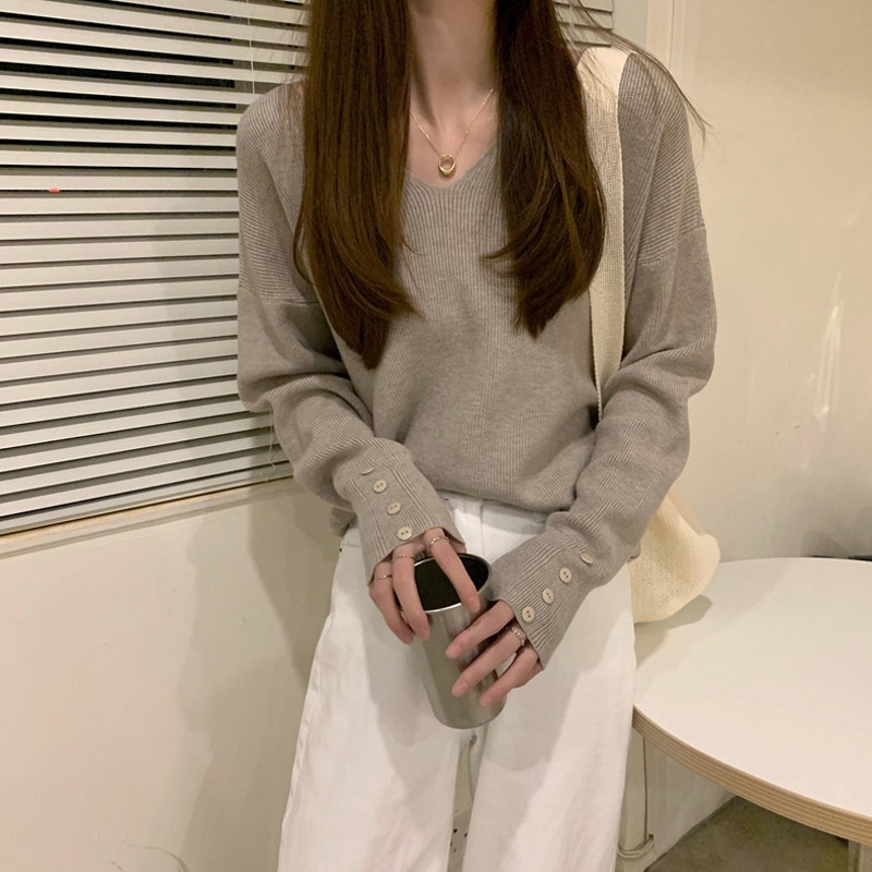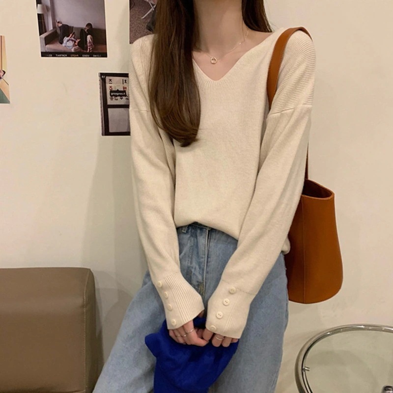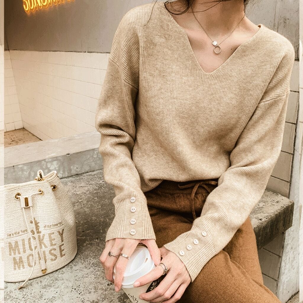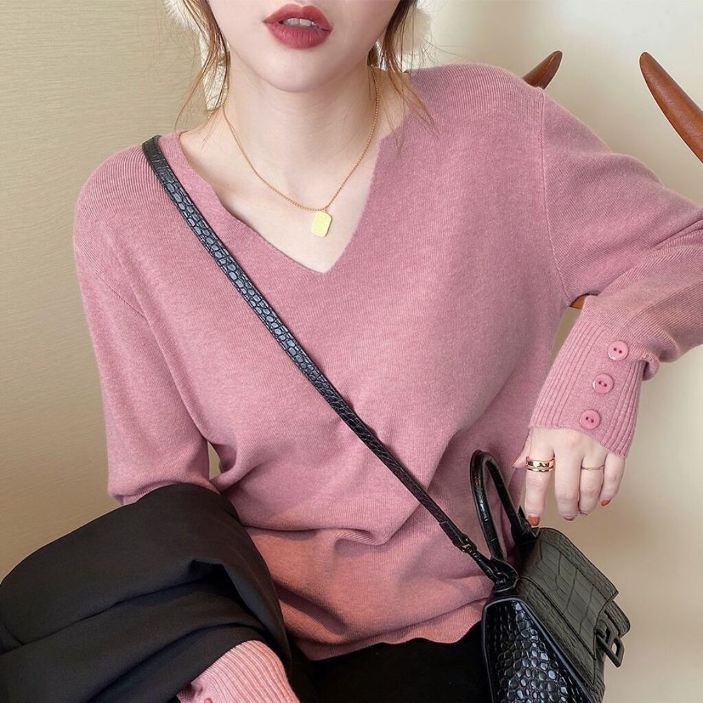 [送料無料]2025春秋新作Vネックボトムシャツ インナーニットジャンパー レディスゆるデザインニッチトップス上級感ロンT