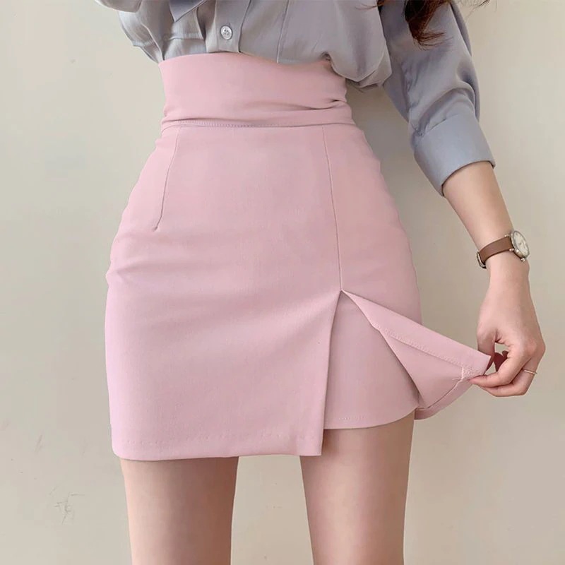 [送料無料]脚魅せミニスカート アプリコット スカート 23 新作 L タイトスカート 通勤
