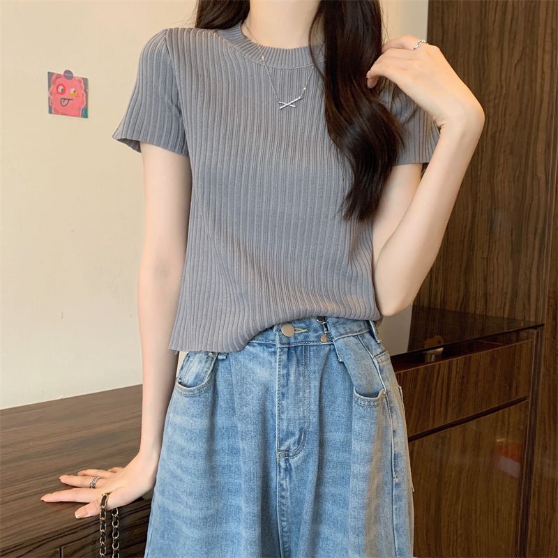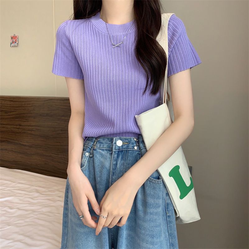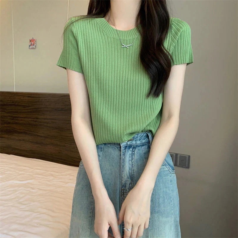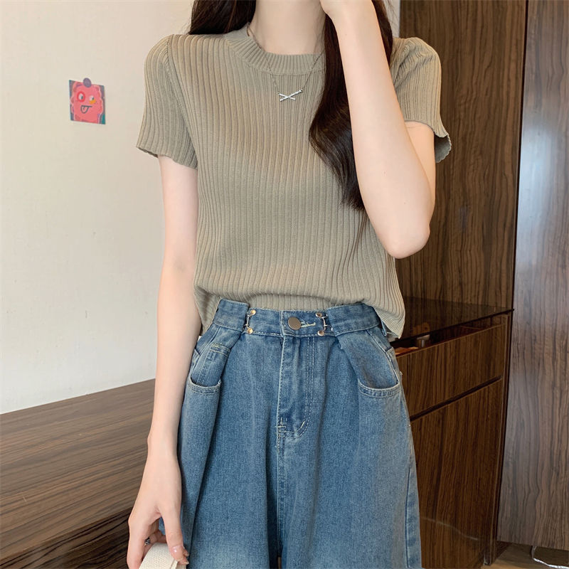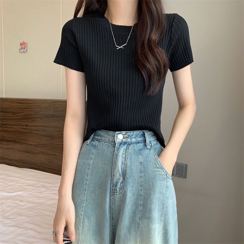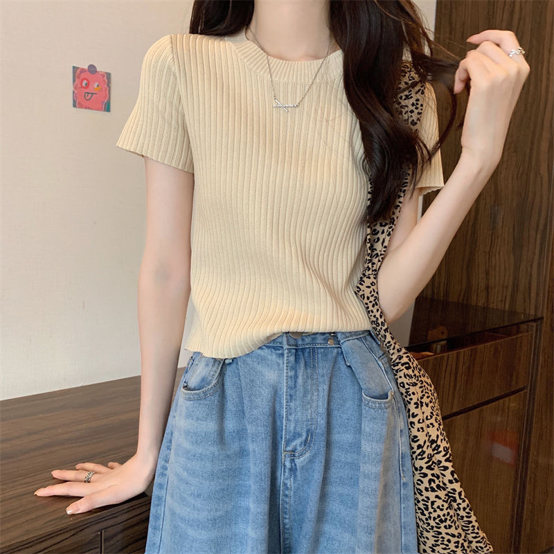 [送料無料]Tシャツカットソー 夏 薄手 新型韓国ファッション 半袖 百掛け 着痩せ 上着 Tシャツカットソー