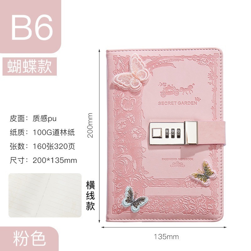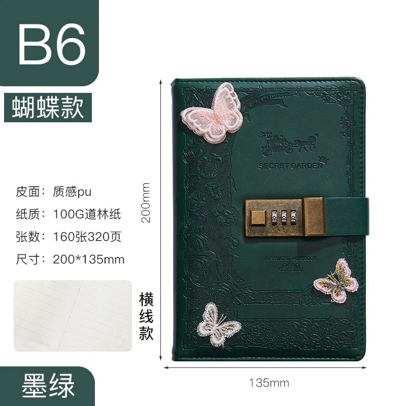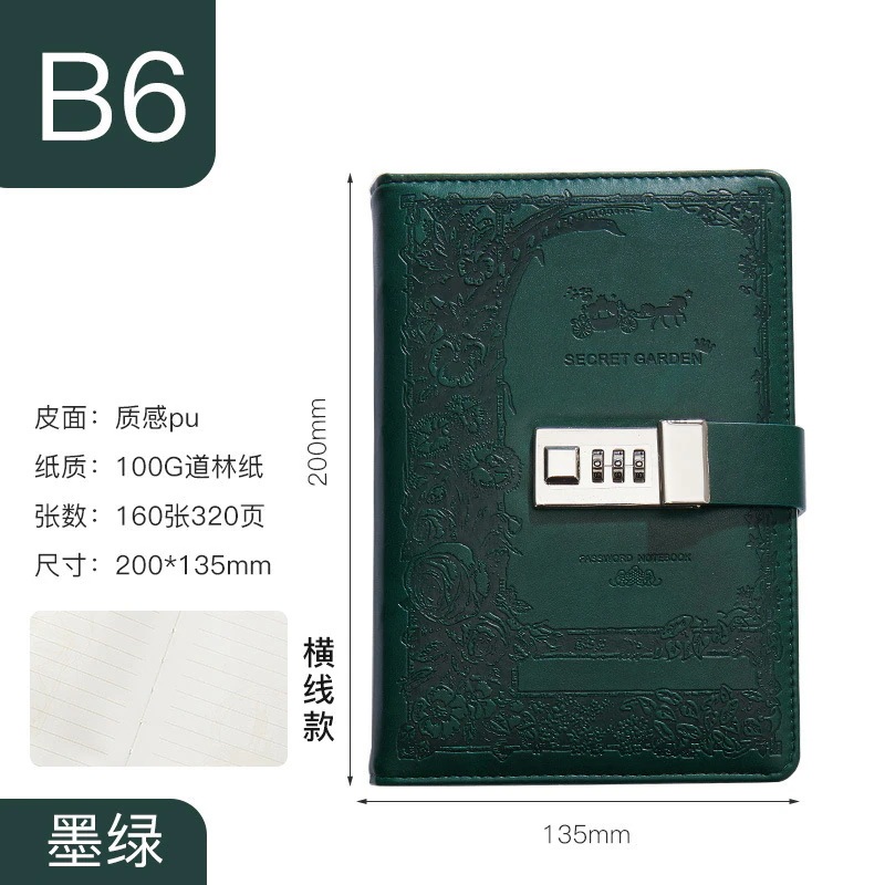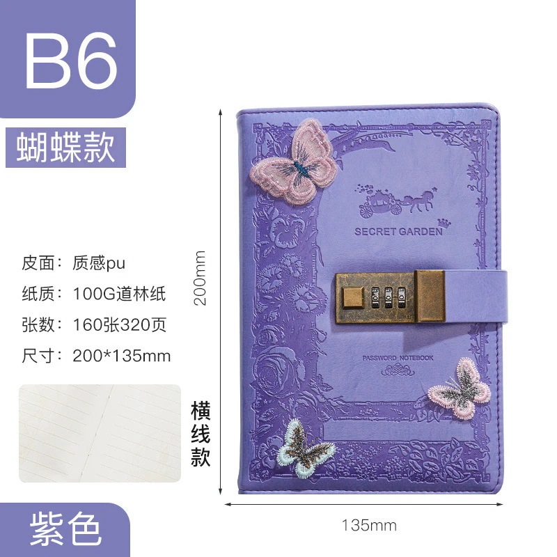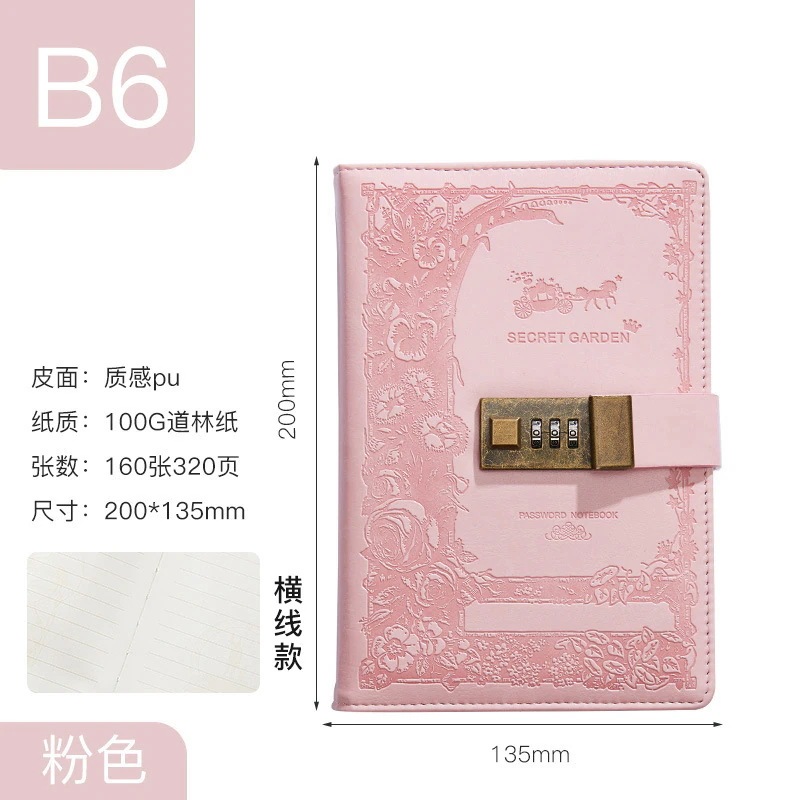 ダイアリー ロックできる 日記用ノートブック 鍵付き 手帳 ペンホルダー付き [2つ買うと200オフ]カード収納ポケット付き