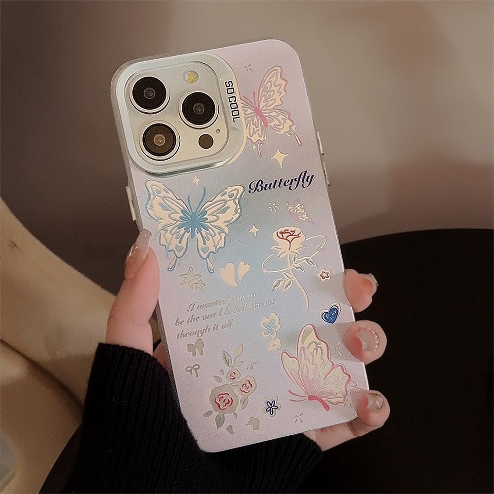スマホケースカラーフル蝶々iPhone15保護ケース14スマホケース11レーザーiphone13pro maxケース