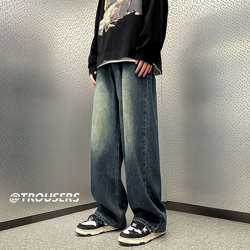 ヴィンテージ・ブルージーンズ メンズ・リラックス・オールド・パンツ カジュアルなドレープ・ワイドレッグ・ドラッグパンツ・タイドパンツ