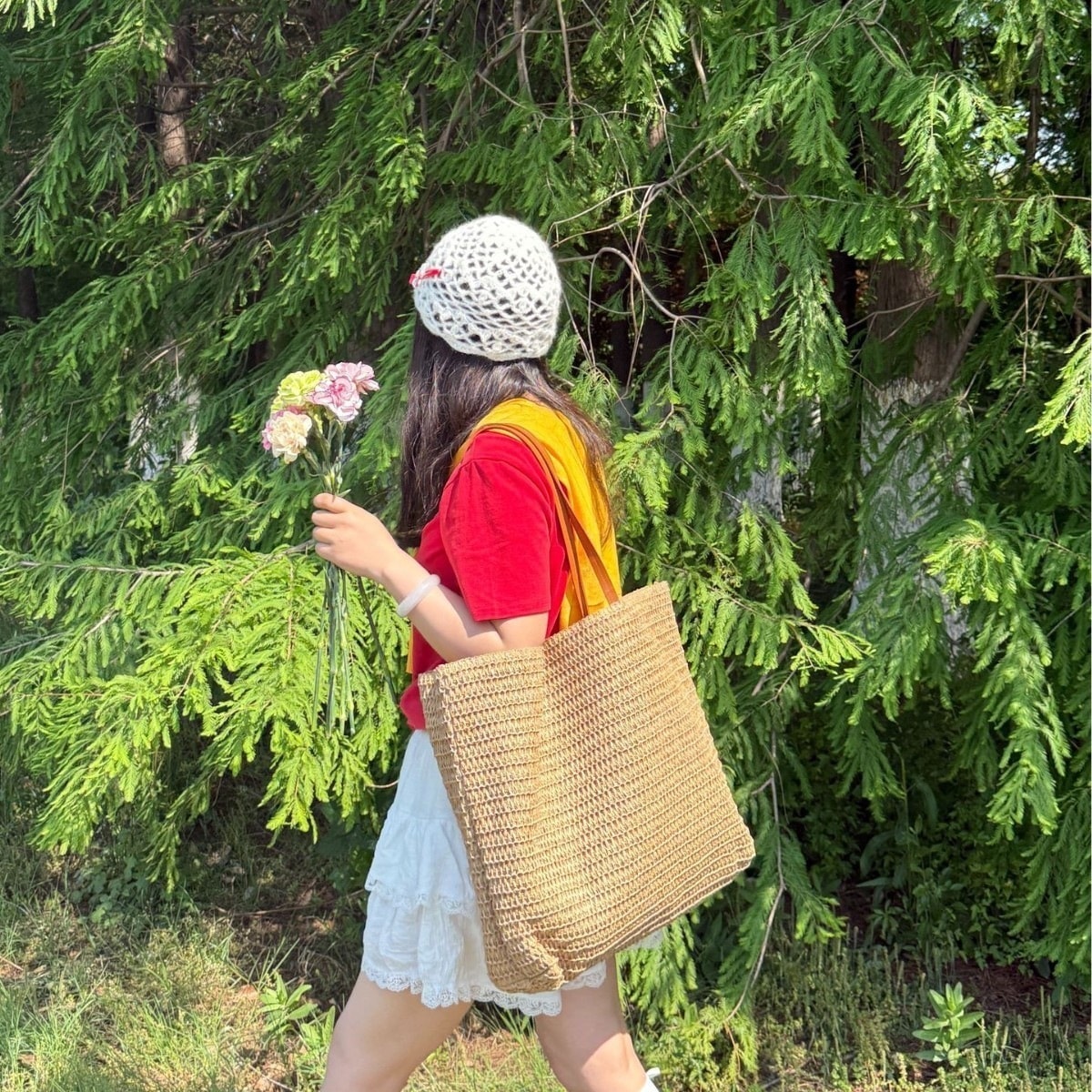 2025新型シングル肩草編みバッグ超大容量ファッション百合ハンドバッグ海辺休暇ビーチバッグ