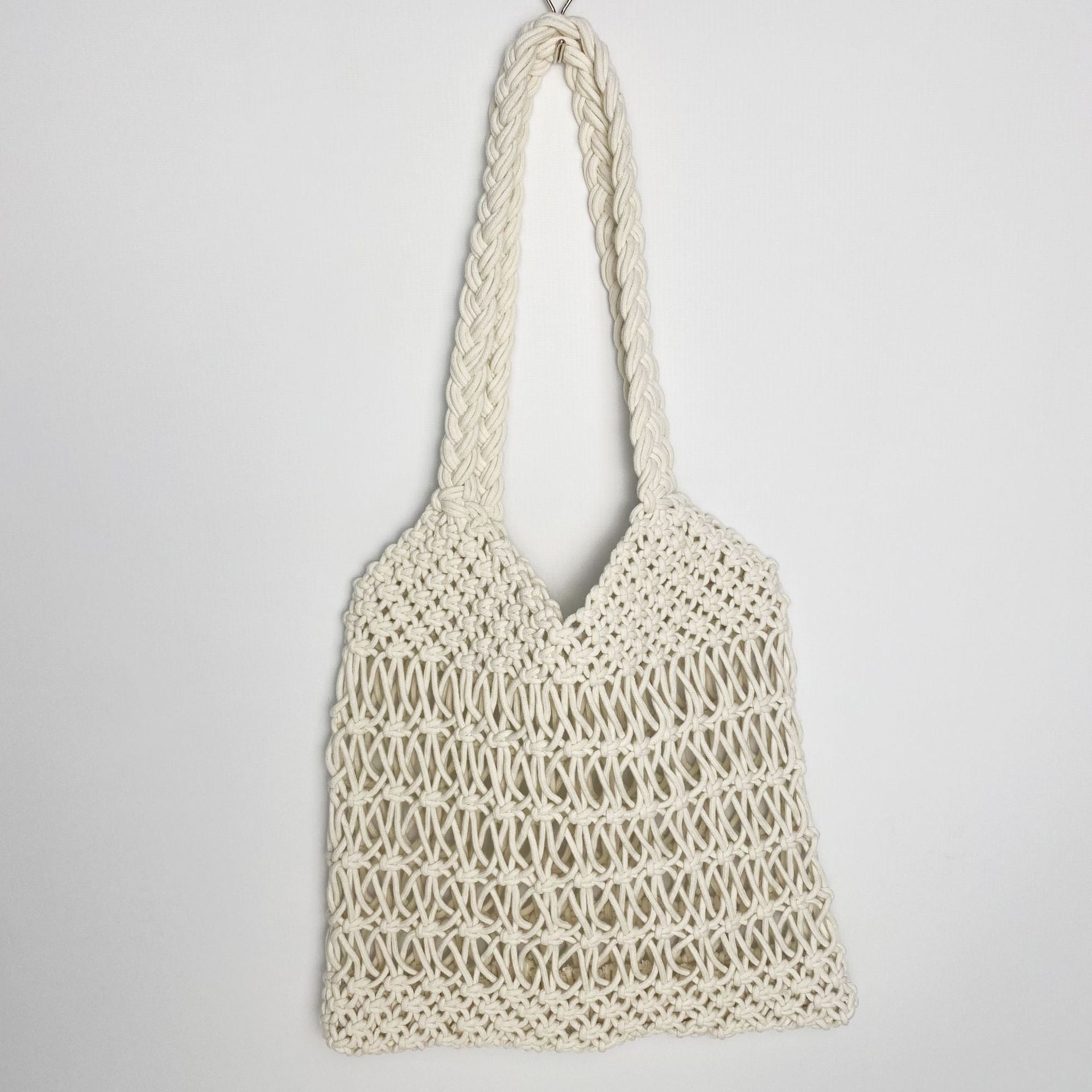 2025新型透かし彫り草編みバッグカジュアル百合バケツバッグ綿縄漁網気質女性バッグ海辺休暇バッグ