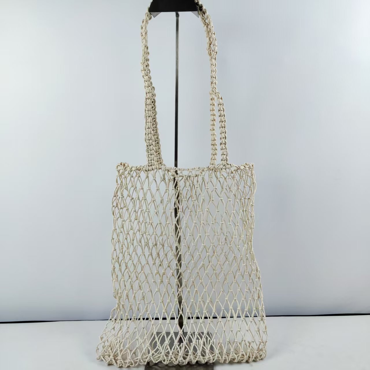 2025春夏の新型ファッションは透かし彫りの編み物をして漁網の袋を包んでリュックサックの大容量の特包の女性を包みます