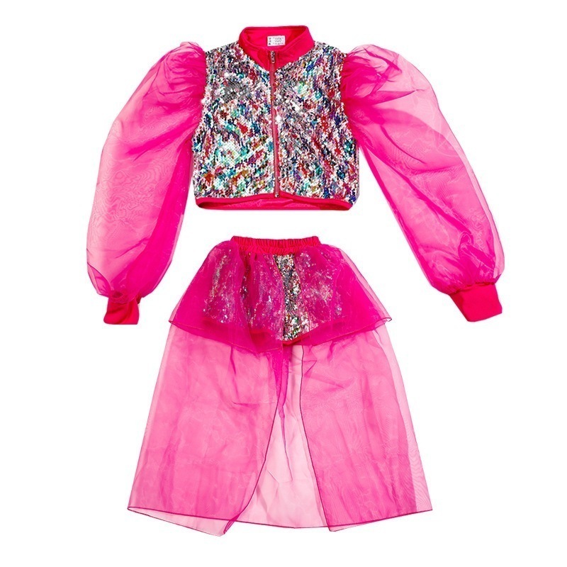 【期間特恵】女の子のダンス衣装チアリーディングのユニフォームジャズダンスの衣装ヒップホップの衣装紫のスパンコールのスカートスカートスーツチュールステージチアリーディング