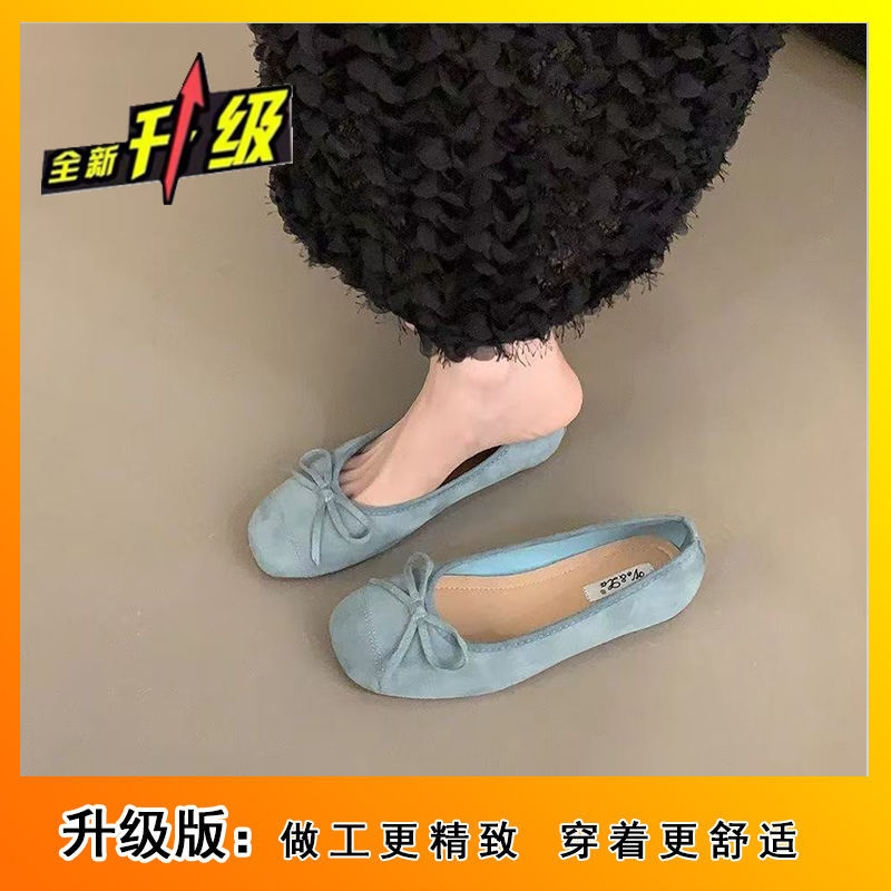 レトロなスエードバレエシューズフェアリースタイルスカートフレンチフラット浅い口シングル靴女性2025夏新作