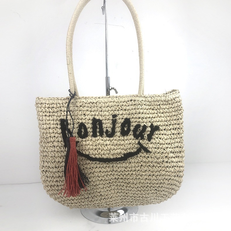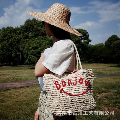 夏の新作草編み包みスマイルシリーズ日系スタイルカジュアル手織り笑顔包みスポット