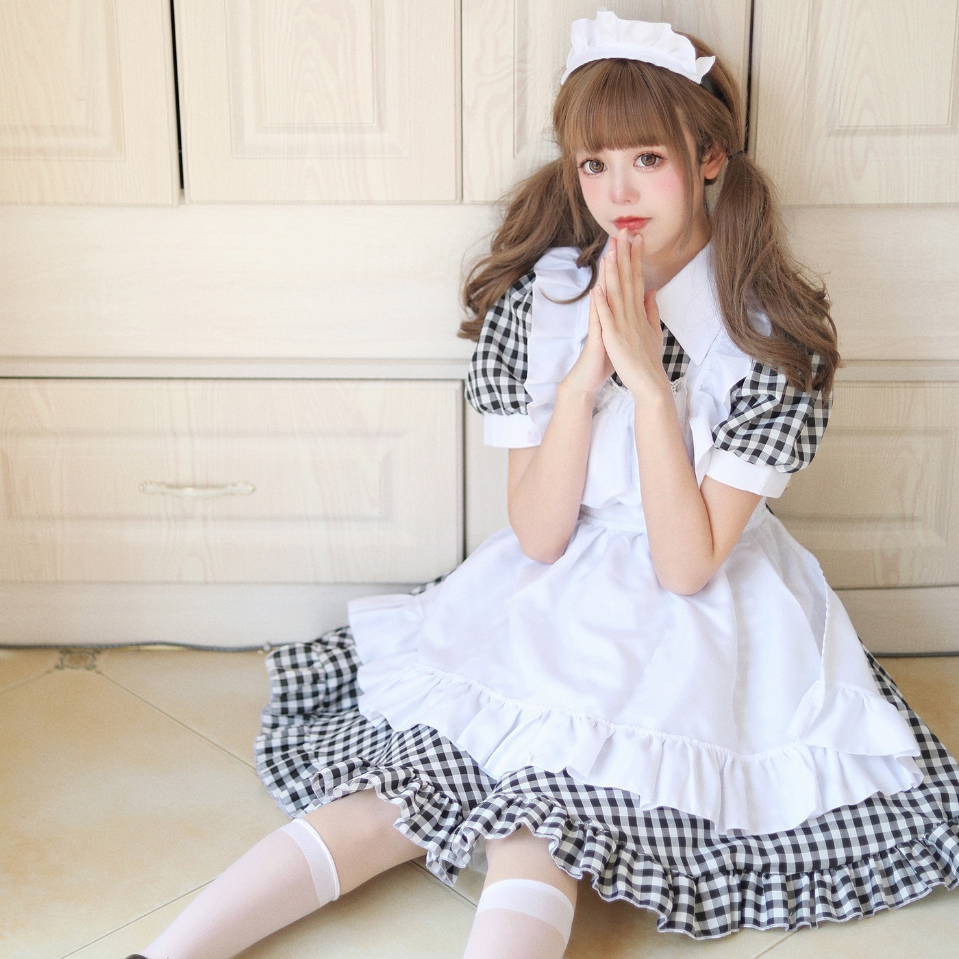 メイド服 コスプレ レストラン カフェ 作業着 ロングスカート 白黒 メイド服 パーティー 衣装