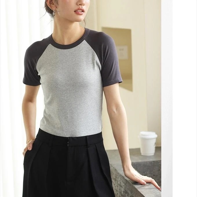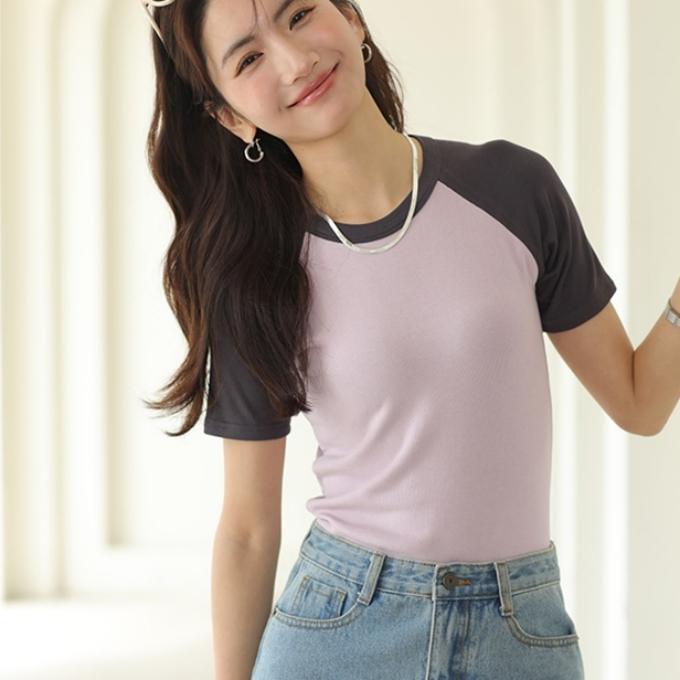 tシャツレディース 半袖 ラグラン Tシャツ ラグランT ストレッチ 配色 な質感 ツートーンーヨン リブ編み 毛玉になりにくい 毛羽少ない リブ のびのび