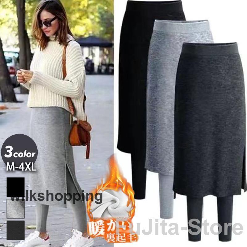 レギンス レディース スキニーパンツ スカート付き サイドスリット 裏起毛 裏ボア ストレッチ 暖 防寒 暖かい 保温 あったか インナー