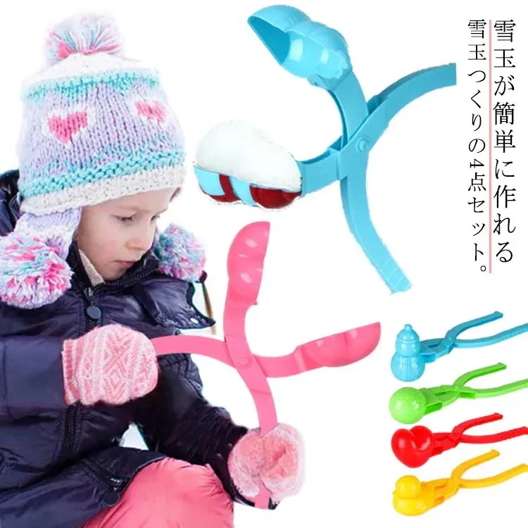 雪玉 キッズ 雪遊び スノーボールメーカー 4個セット 雪玉つくり 雪玉製造器 アイテム 雪合戦に あひる フットボール 雪だるま 雪かき 子供 雪遊び ハート