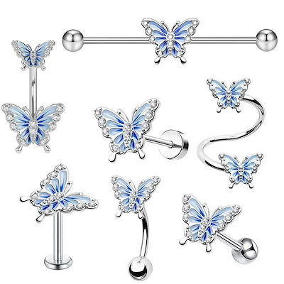 ニューオイルドロップダイヤモンドバタフライへそリング耳骨爪耳爪鼻リングインダストリアル耳爪眉毛爪リップ爪耳骨リング1323