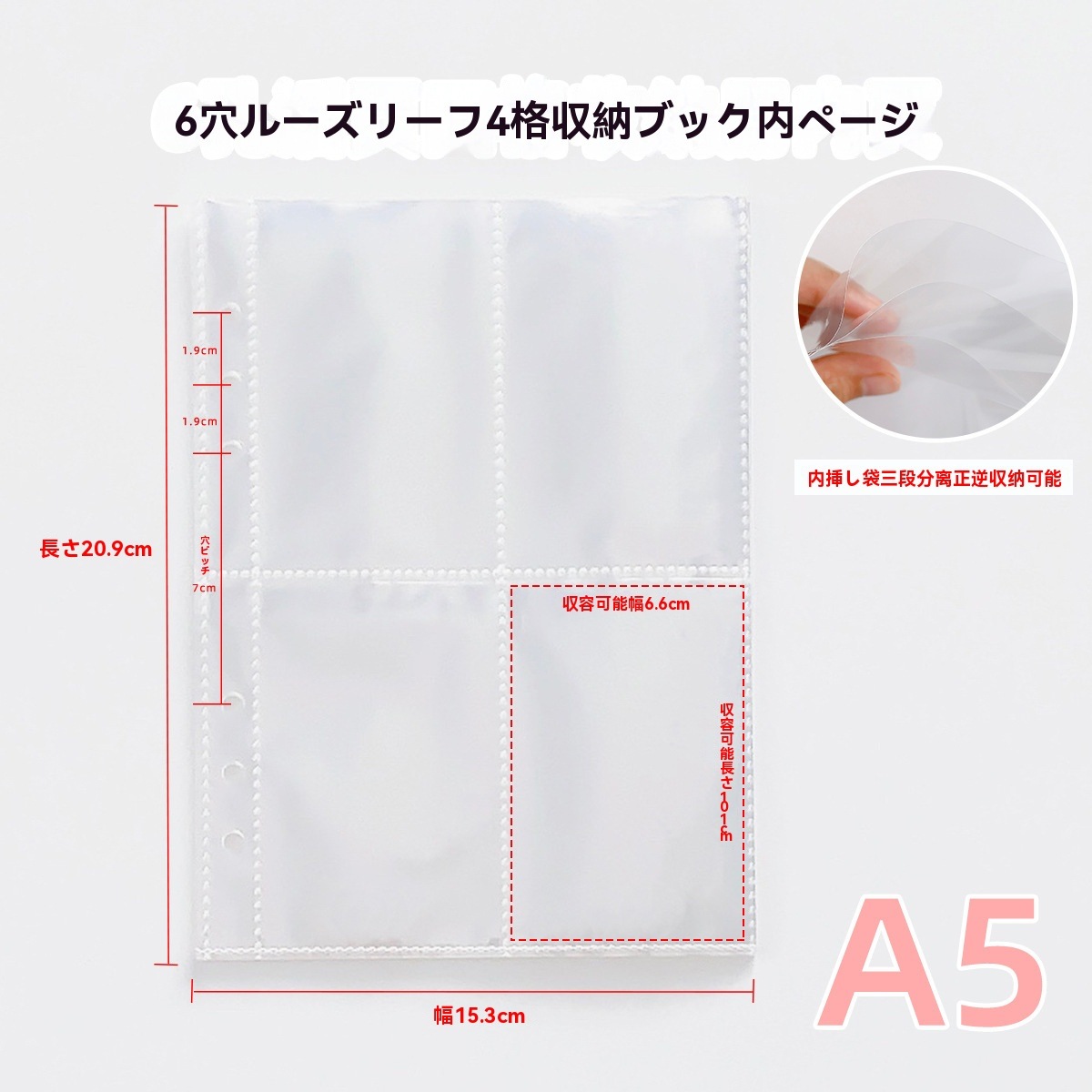 ポラロイド写真アルバム A5 ルーズリーフ 3インチ フォトカード 小型カード ステッカー素材 メモ 収納ブック
