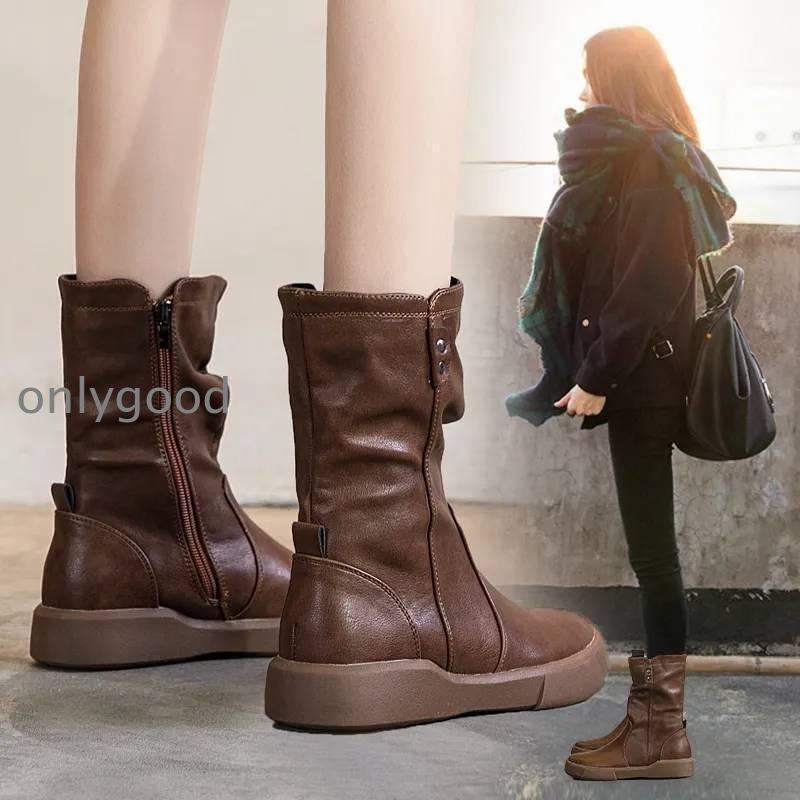 【3日以内出荷】ショートブーツ レディース カジュアル ショート ブーツ ぺたんこ フラット ミドル ルーズ くしゅくしゅ 裏ボア 暖かい アメカジ ハーフ 撥水加工