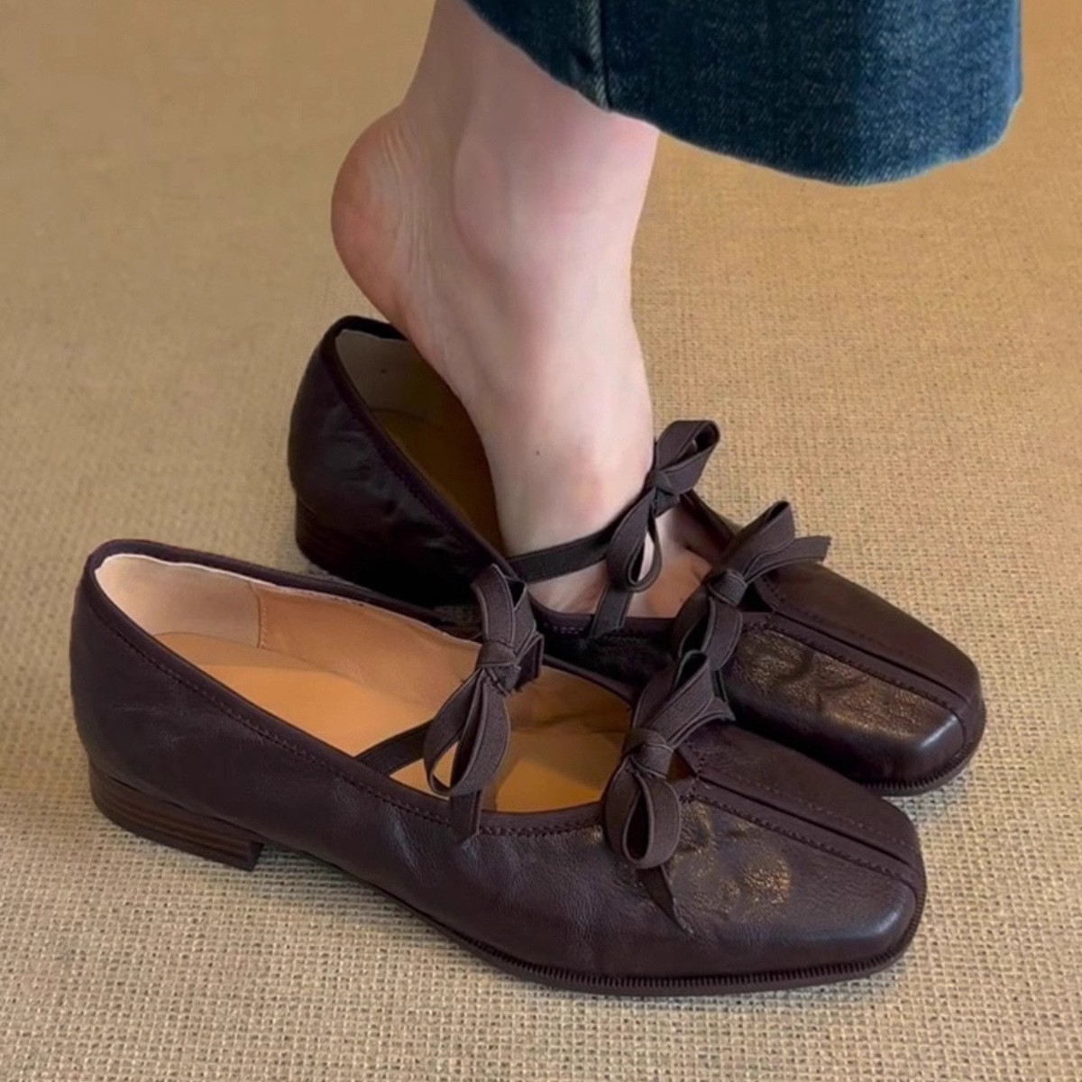 シューズ 新作 レトロスクエアトー バレエシューズ 女性用 スリッポン リボン フラット メアリージェーンシューズ