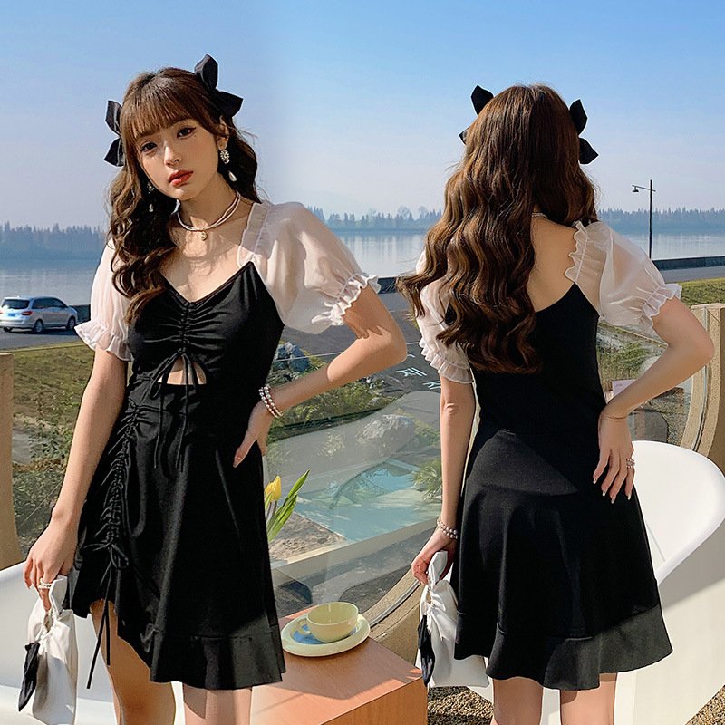 新商品が続々セール中 水着 レディース 体型カバー セット ママ 20代 30代 40代 ロング丈 可愛い お洒落 無地 露出控えめ 大きいサイズ お腹 お尻 太もも カバーアップ