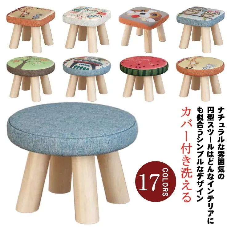低い椅子 四角スツール 丸スツール 子供 木製スツール いす ミニスツール 木 椅子 カバー付き洗える チェアー ロースツール ウッドスツール 寝室 イス 丸椅子 ラウンドスツール ロ