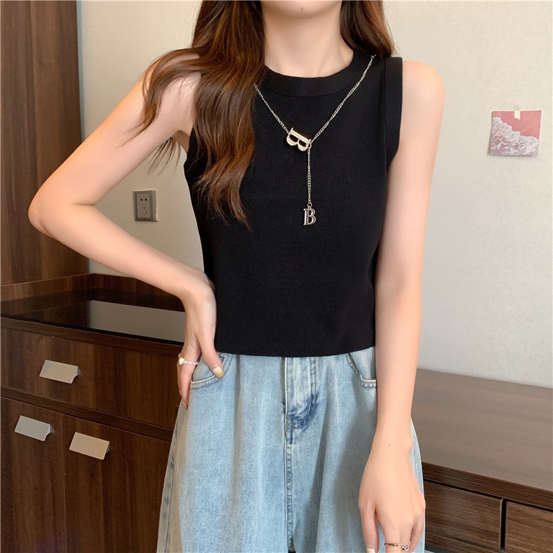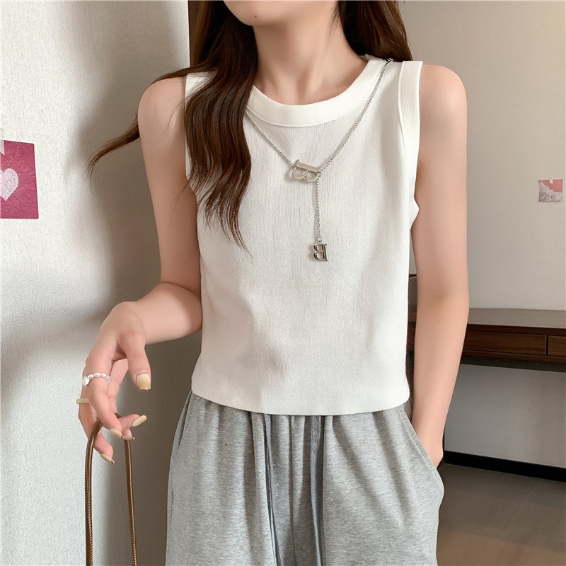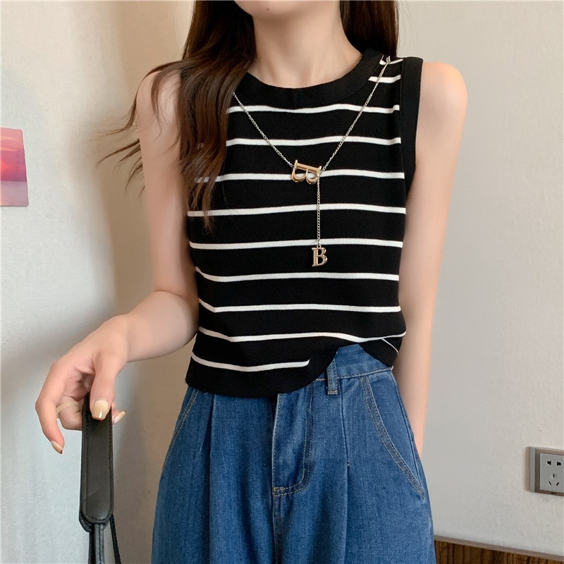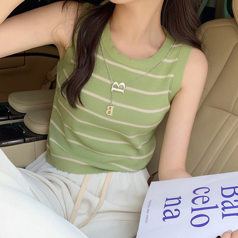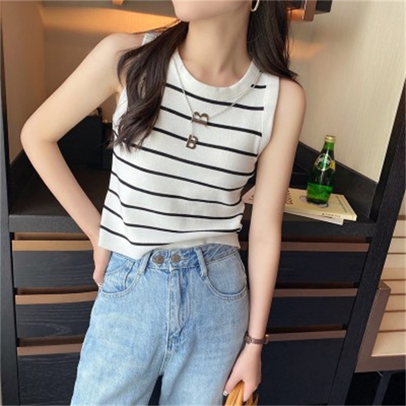 SMFashion超人気商品推薦 シンプル カジュアル ニット トップス ノースリーブ 無地/ストライプ ニット Tシャツ 韓国ファッション ワイルド ニット Tシャツ